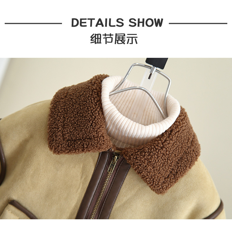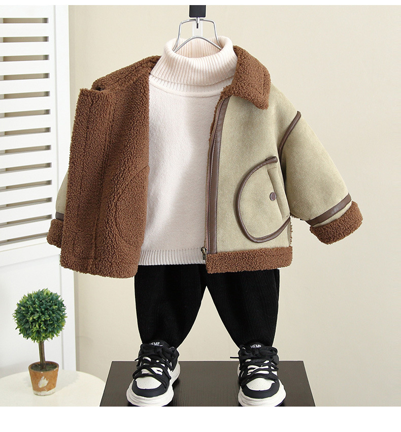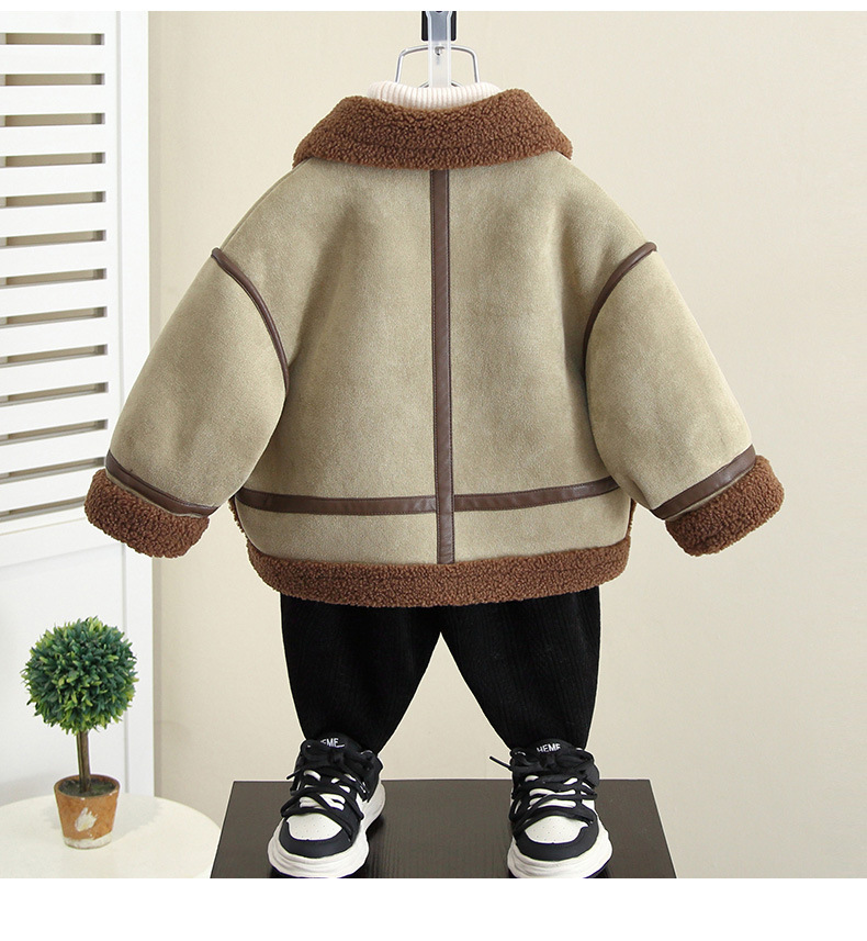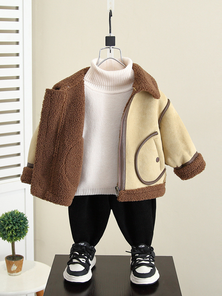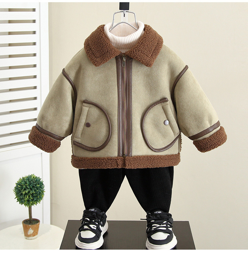 4592 Бархатная куртка для мальчиков Осень-Зима 2025 Новая детская зимняя одежда с мехом Встроенное шерстяное пальто Детская одежда