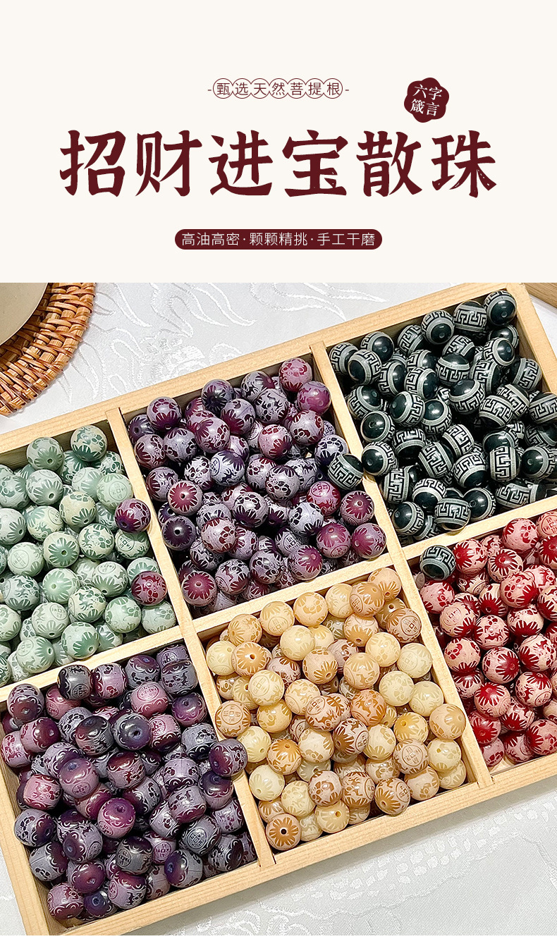 Зеленый плавающий цветок, шестизначное девизное круглое бусины [одинарные]; Круглые бусины Юаньшань Дай с шестью символами мантры [одиночные]; Шестизначная мантра, круглые бусины из румянца [одиночные]; Бусины Lucky Purple Grape [Одиночные]; Шарик-притч с шестью символами фиолетового винограда [одиночный]; Круглые бусины с шестью символами мантры фиолетового цвета с плавающим цветком [одинарные]; Бусины из киновари «Удача и сокровища» [Одиночные]; Киноварь для шестизначного шара с лозунгом [одиночный]; Счастливый шар четырех сокровищ [Сингл]; Четыре сокровища, шестизначные круглые бусины-манты [одиночные]; Круглые бусины Lucky and Treasure Huang Duobao [одинарные]; Круглые бусины с шестизначной мантрой Хуань Дуобао [одинарные]; Шарик-манта из шести символов Little Lime [одиночный]; Шестизначные мантры из зеленого лимона [одиночные]; Круглые бусины с гравировкой темно-зеленого цвета темного цвета [одинарные]; Круглые бусины с девятибуквенным девизом из зеленого сандалового дерева [одинарные]