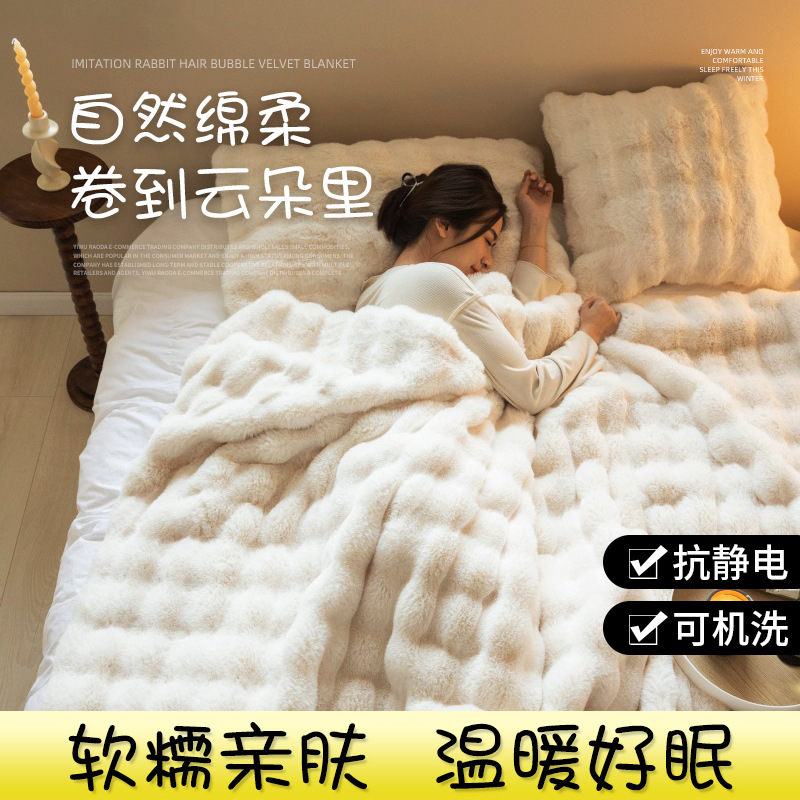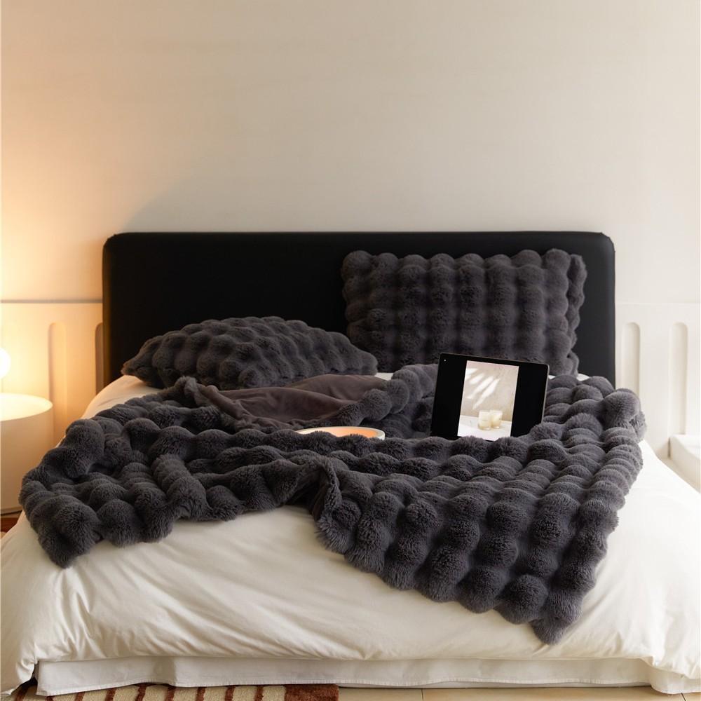 Плед из флиса «Тосканский пузырь», плед из кроличьего меха, утолщенный, теплый, однотонный, двусторонний флисовый плед из рашеля, покрывало