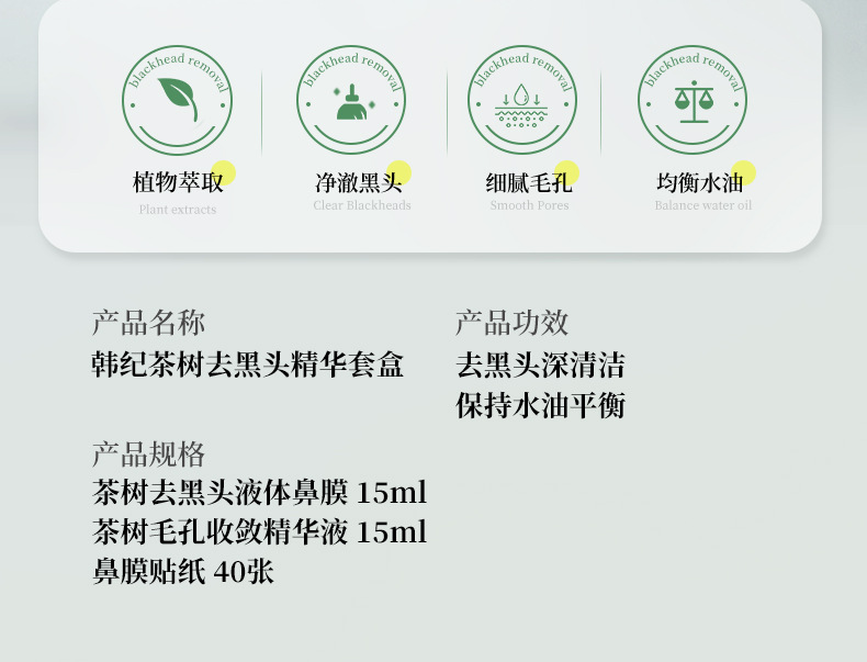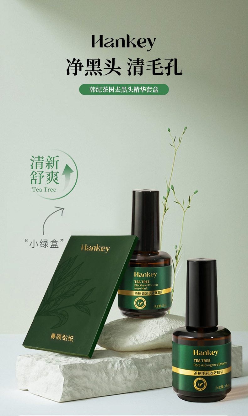 Набор эссенций для удаления черных точек чайного дерева Hanji, Глубокая очистка, носовая маска, Пластырь от черных точек, эссенция для конвергенции пор