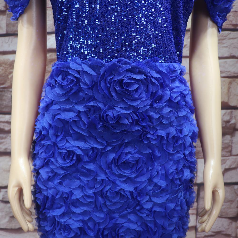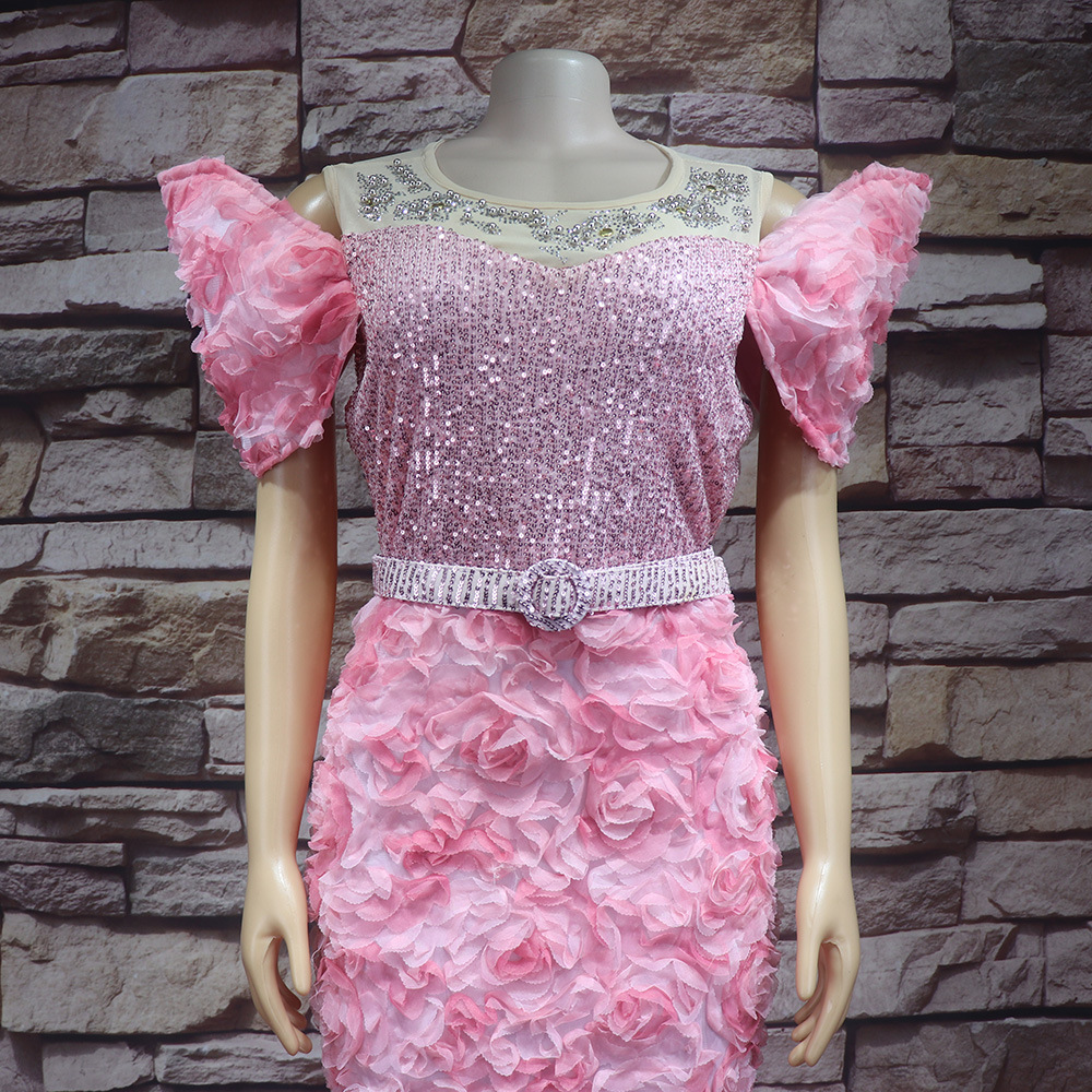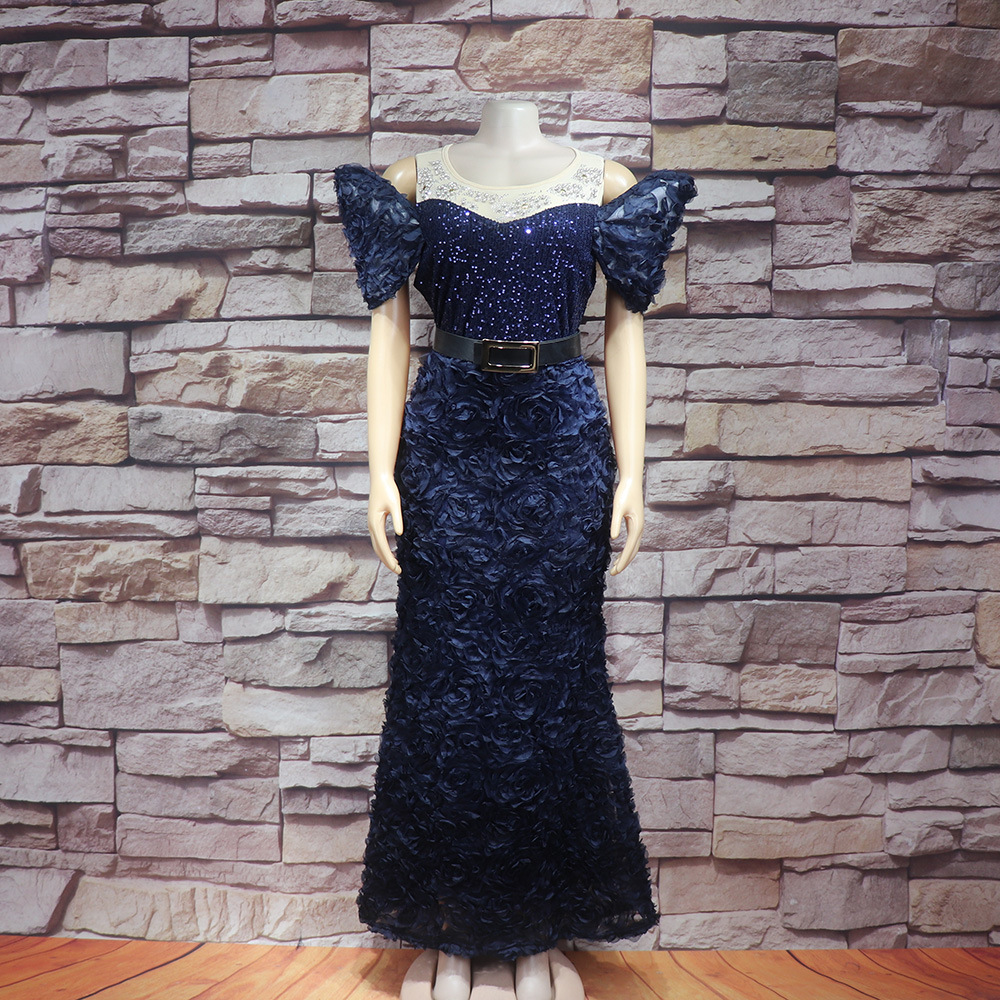 Внешняя торговля африканских женщин платье Роскошные трехмерные вышитые Shaped воротник сетки бисер Горячие кусок вечернее платье с поясом
