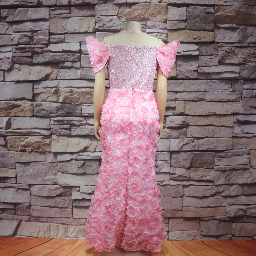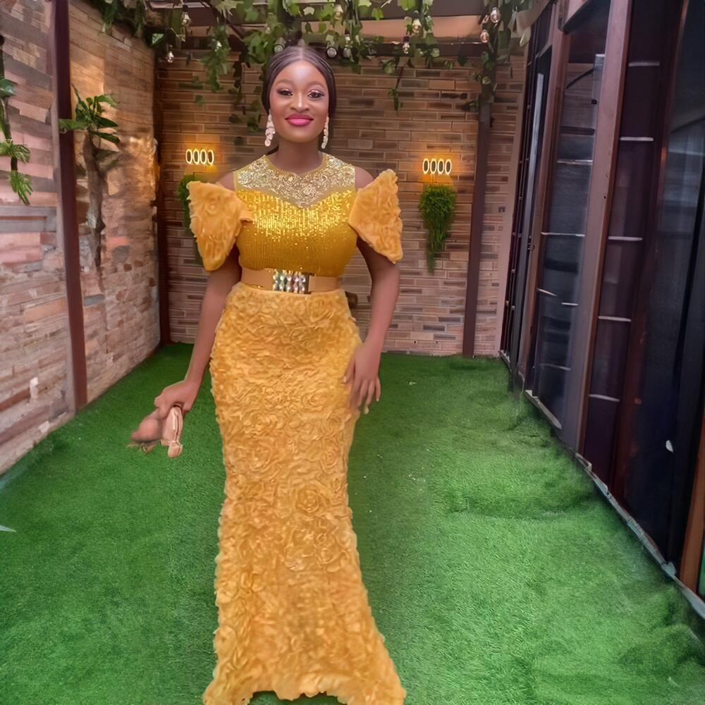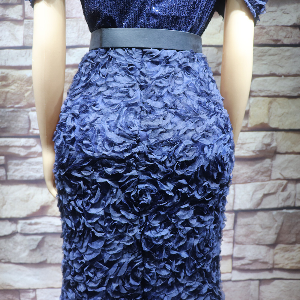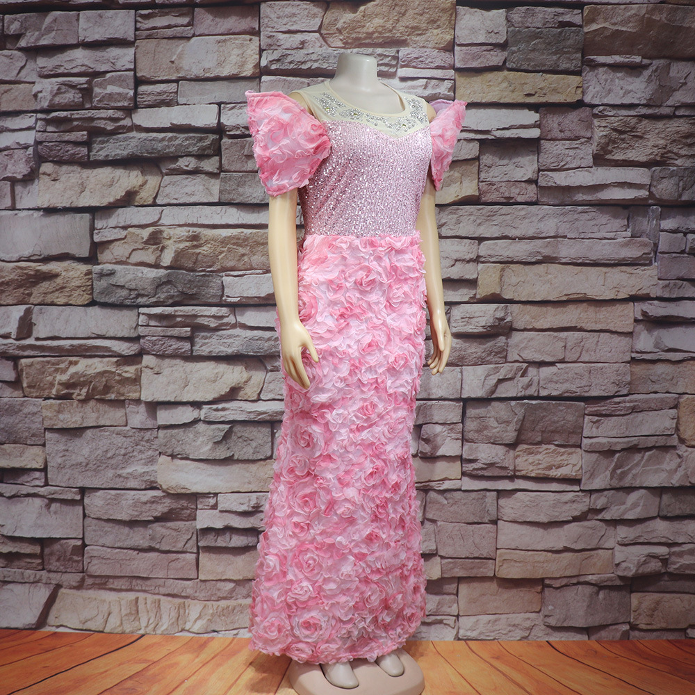 Внешняя торговля африканских женщин платье Роскошные трехмерные вышитые Shaped воротник сетки бисер Горячие кусок вечернее платье с поясом