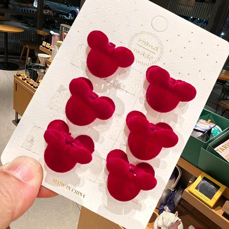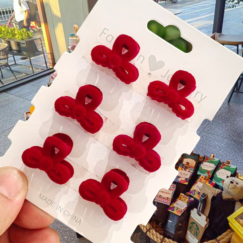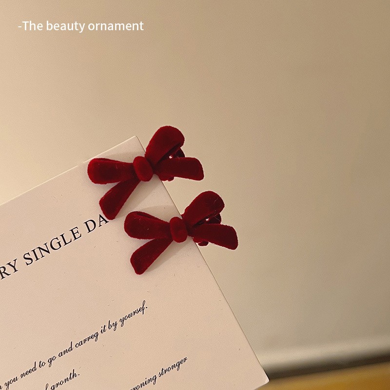Маленький бант ~ Осенне-зимняя маленькая заколка для волос с флокированием Интернет-знаменитости 2024 Новый стиль заколки для волос с челкой Женский аксессуар для волос.