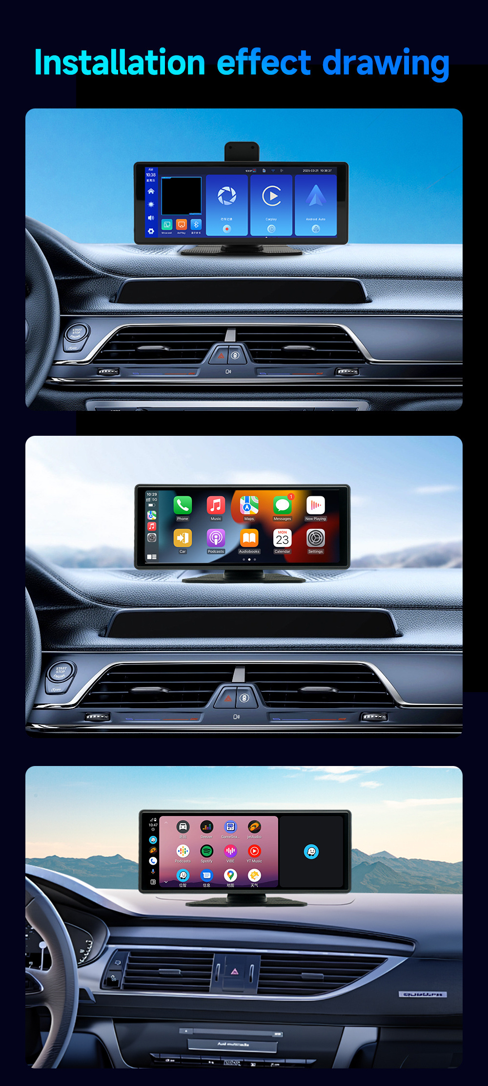 Трансграничный 10,26-дюймовый Carplay портативный рекордер автомобильная навигация Центральный экран с большим экраном bluetooth автомобильная навигация