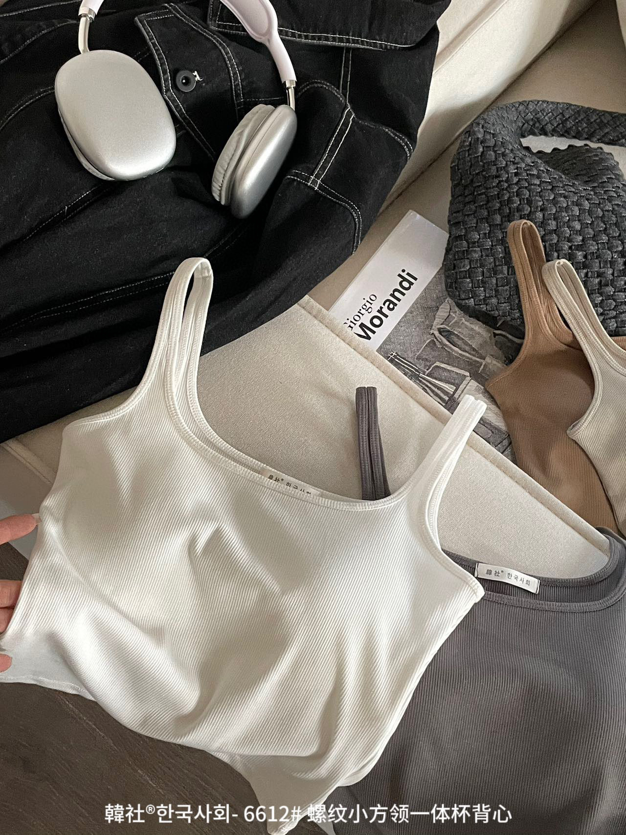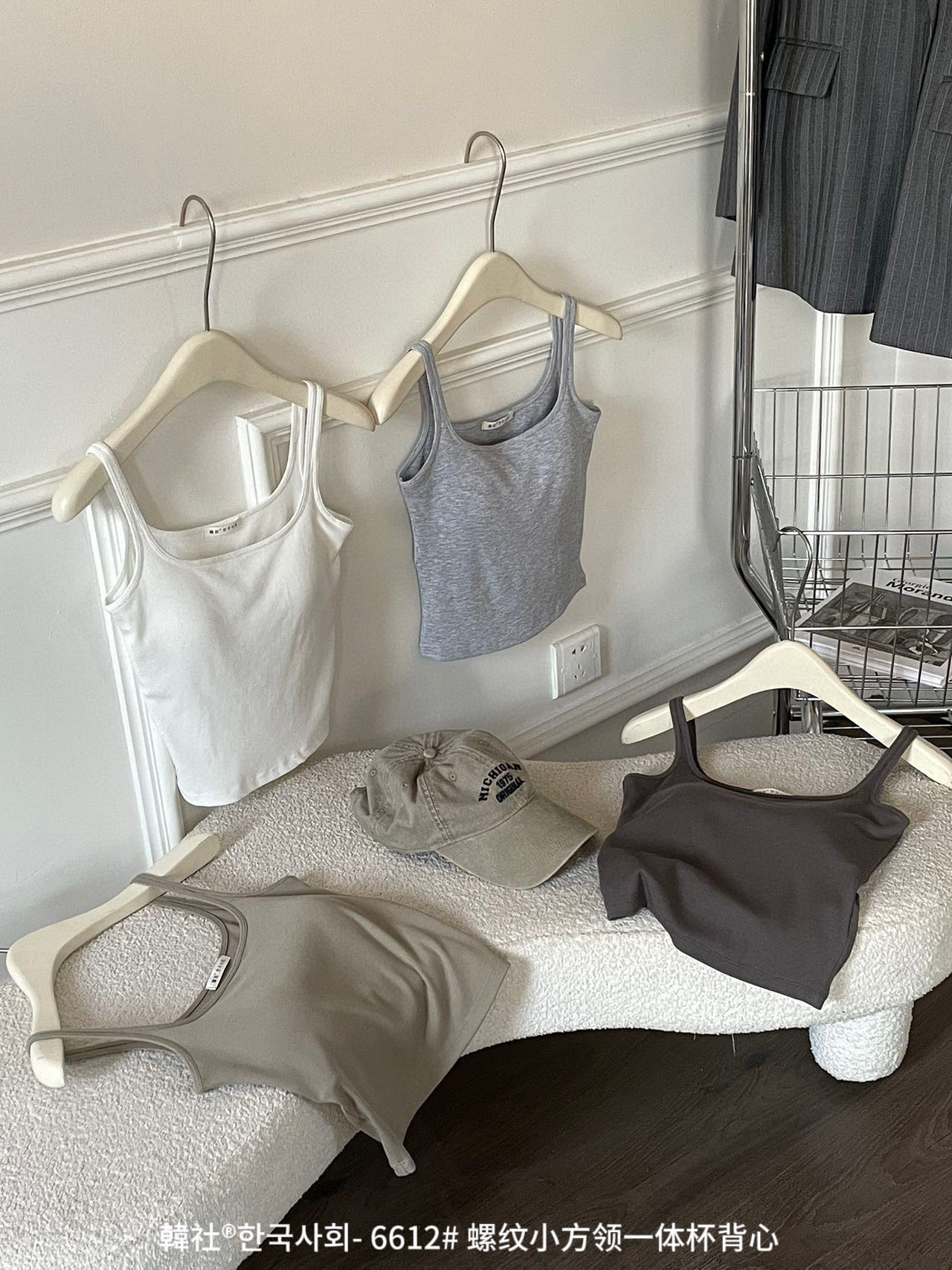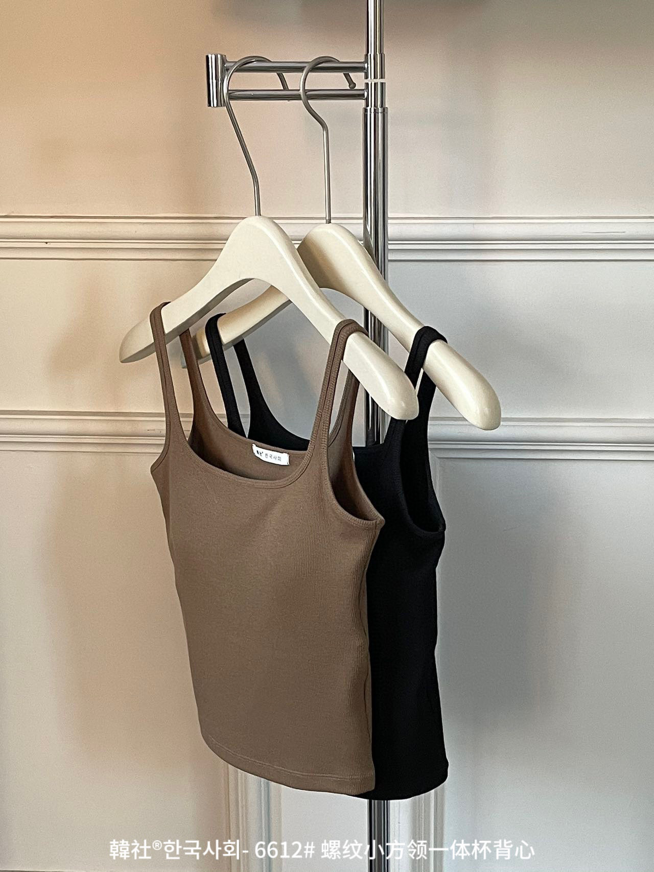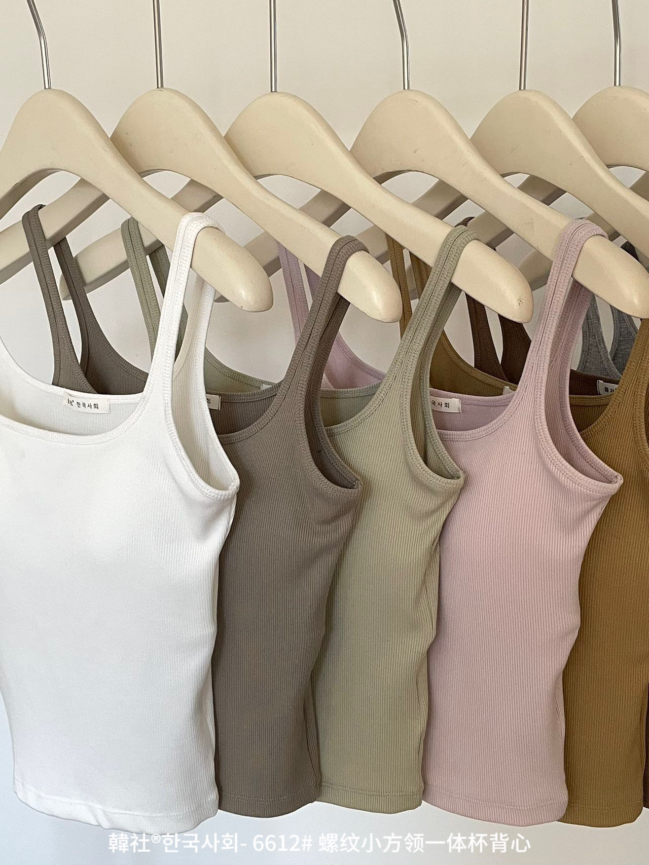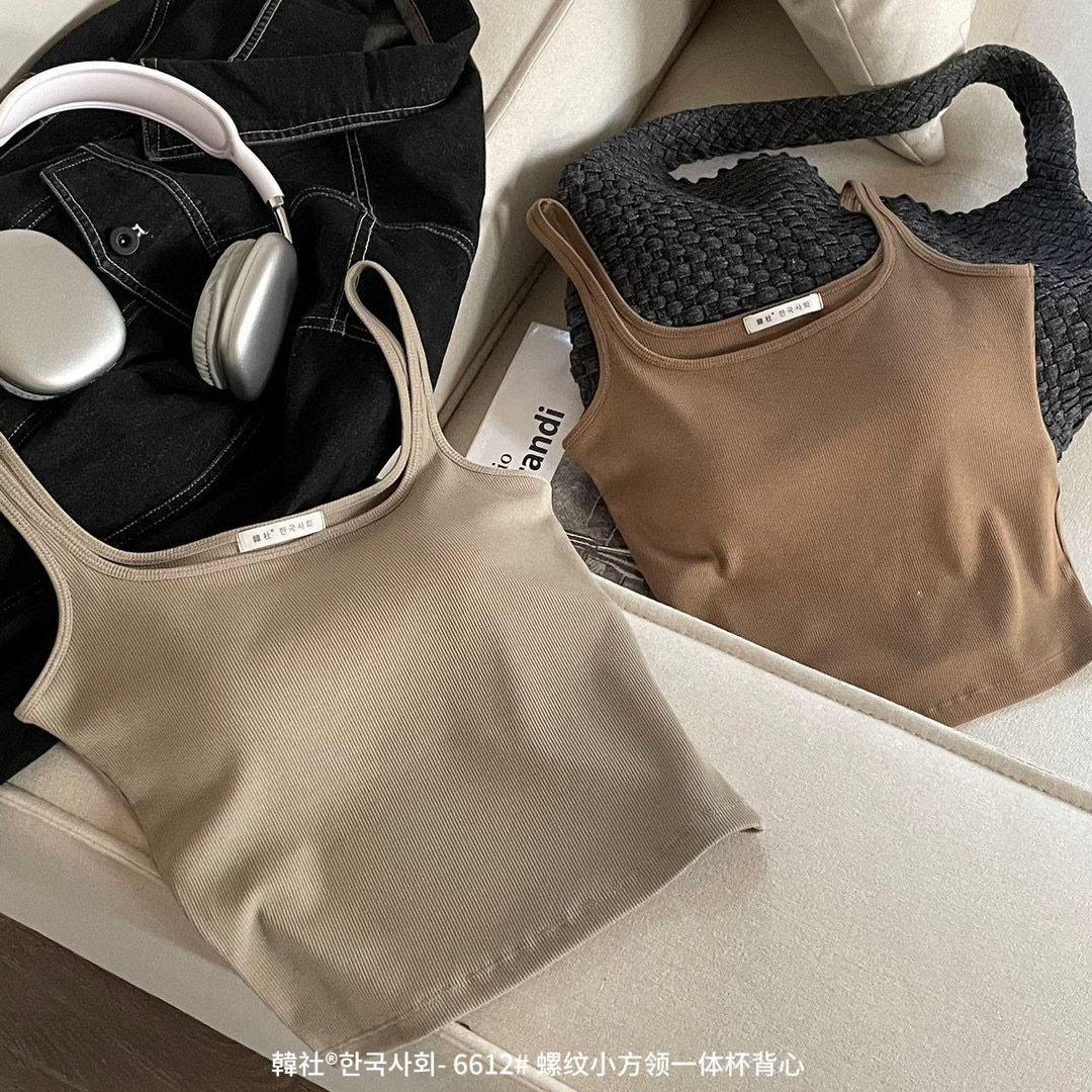 韓社®한국사회- 6612# 螺纹小方领一体杯背心