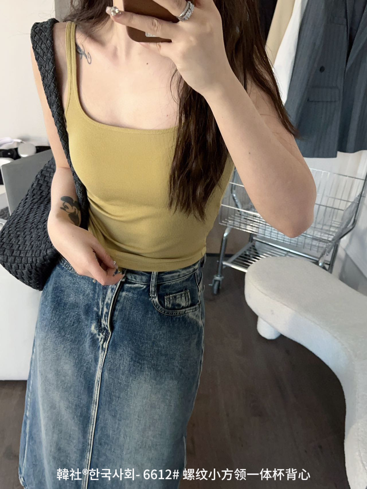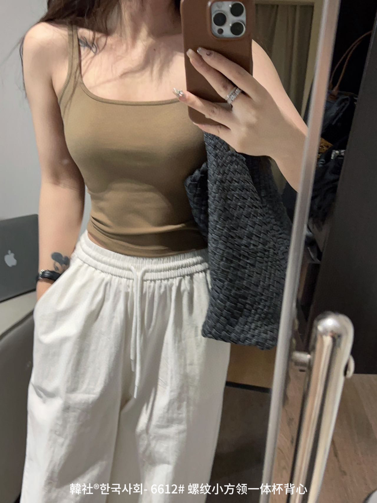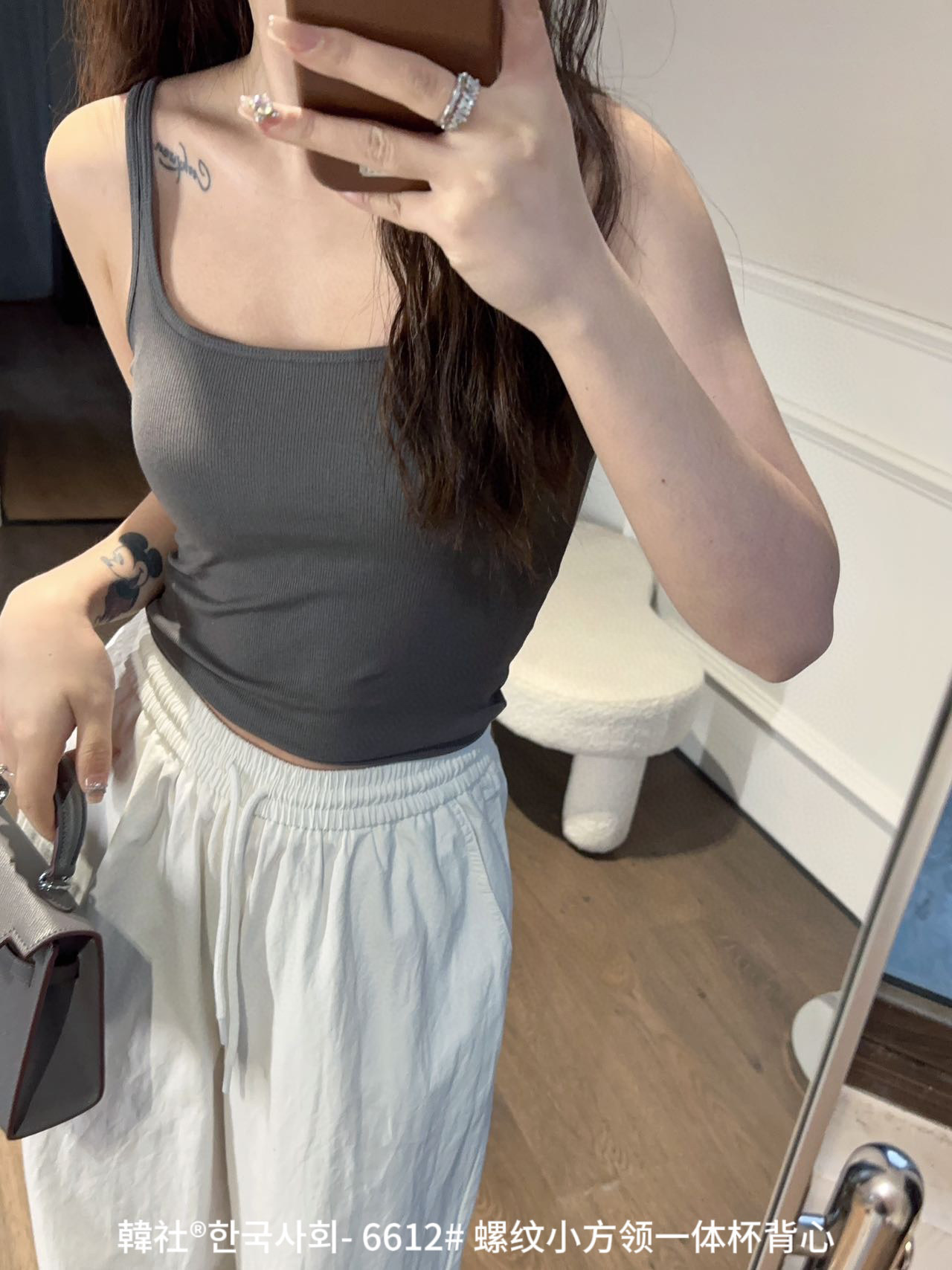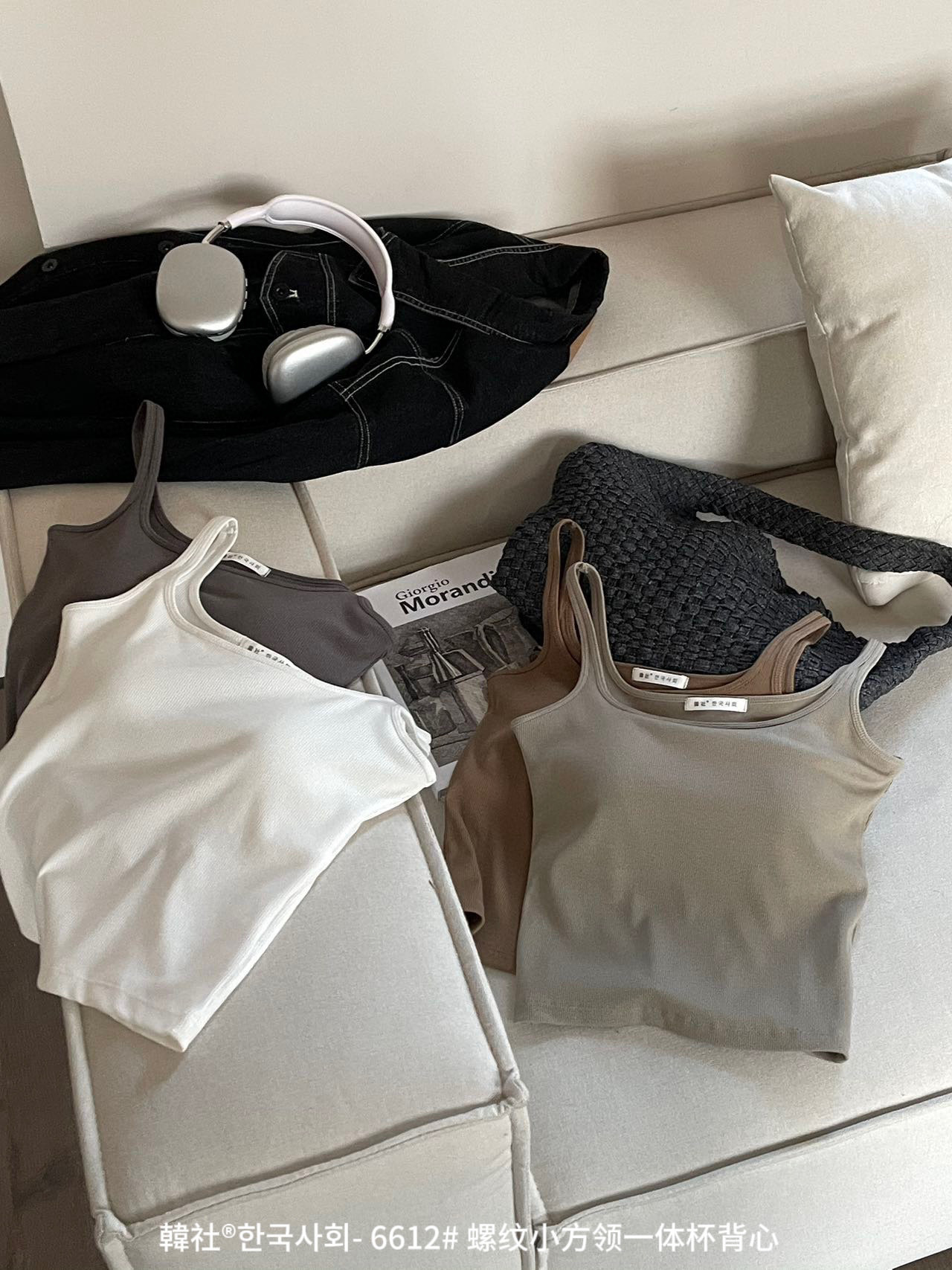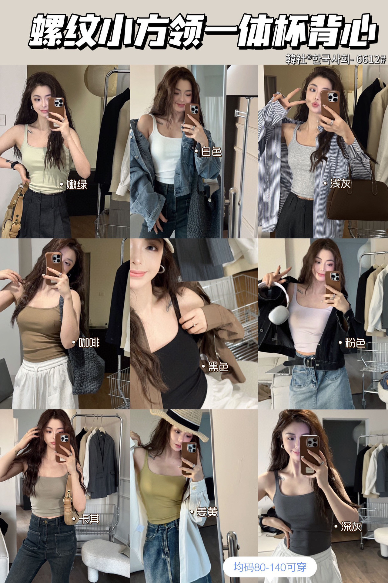 韓社®한국사회- 6612# 螺纹小方领一体杯背心