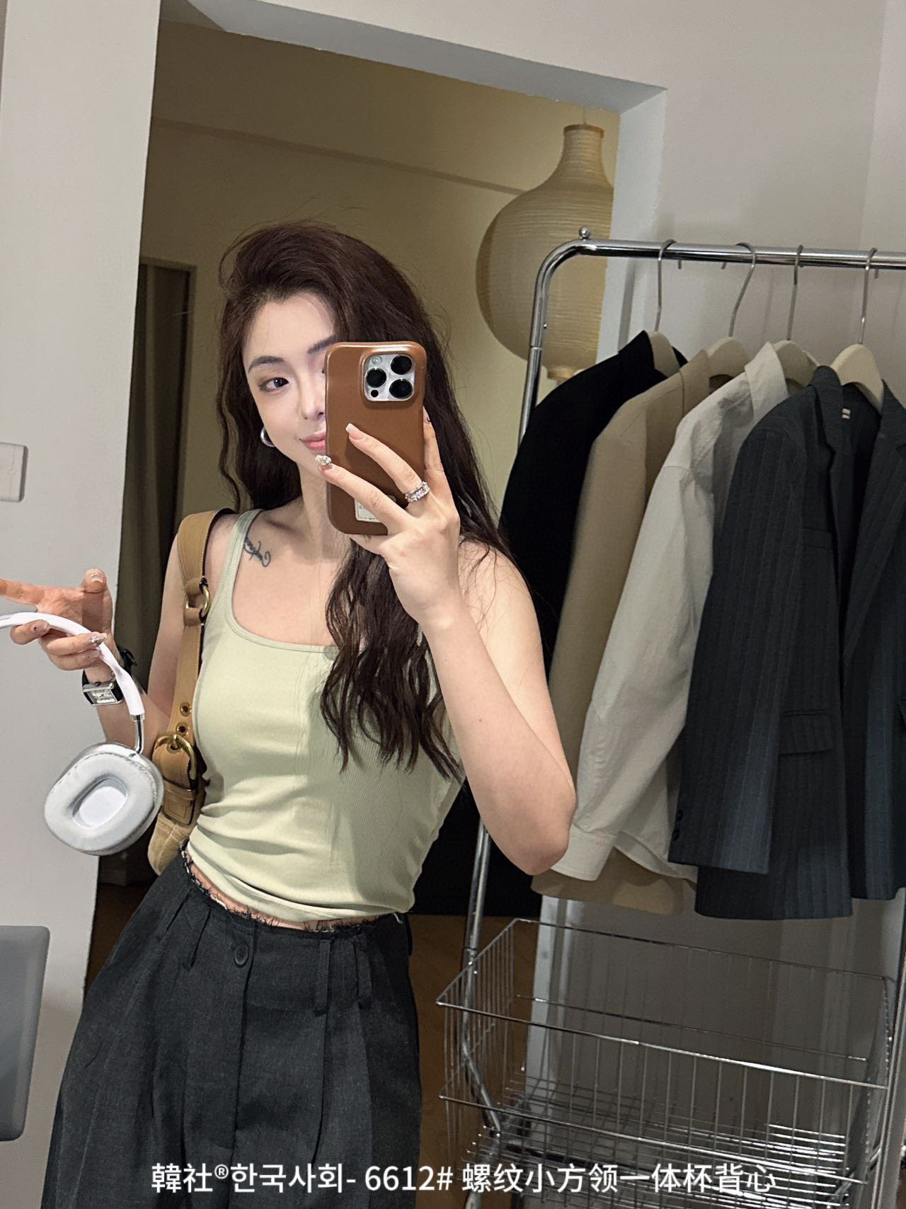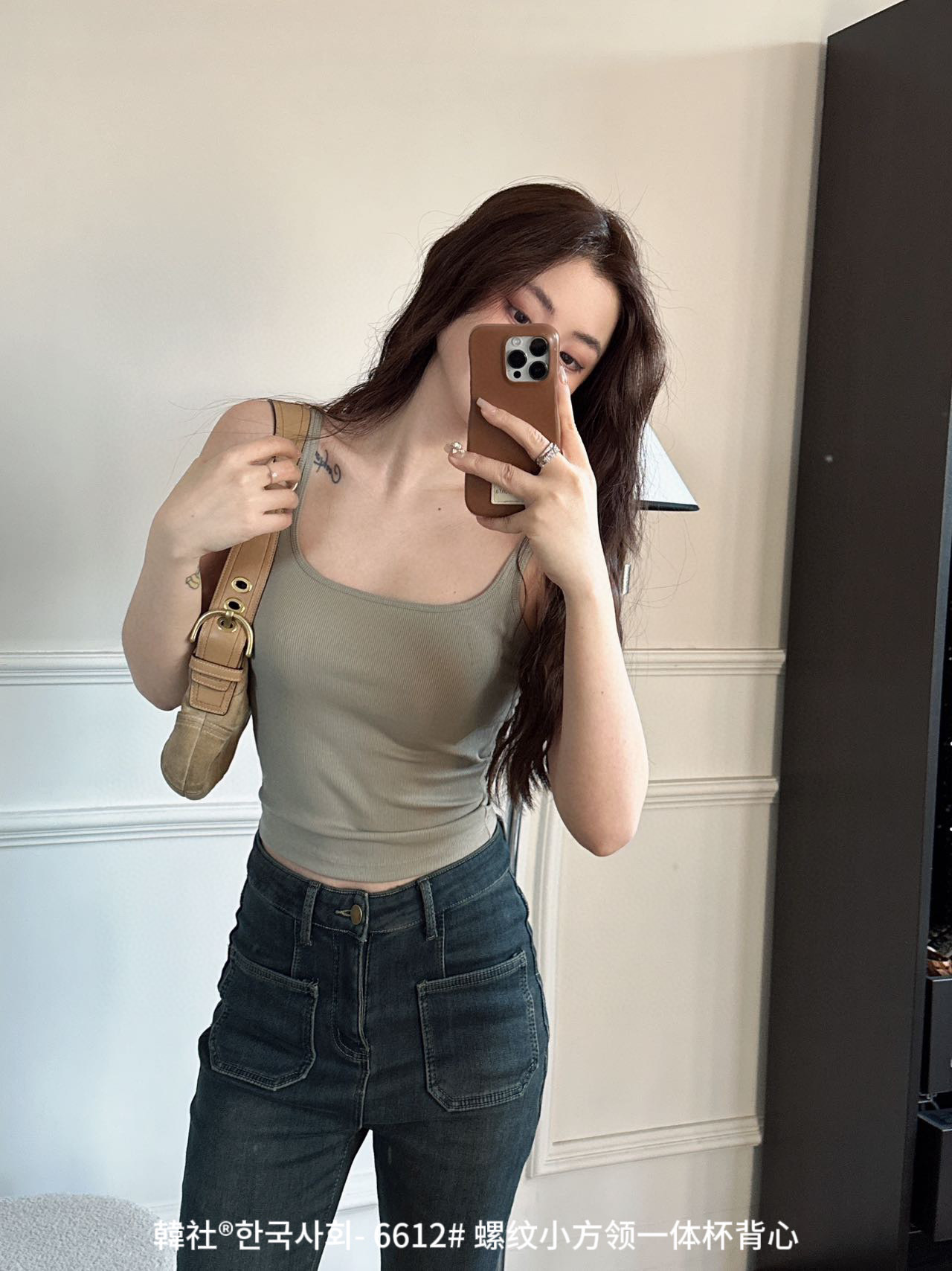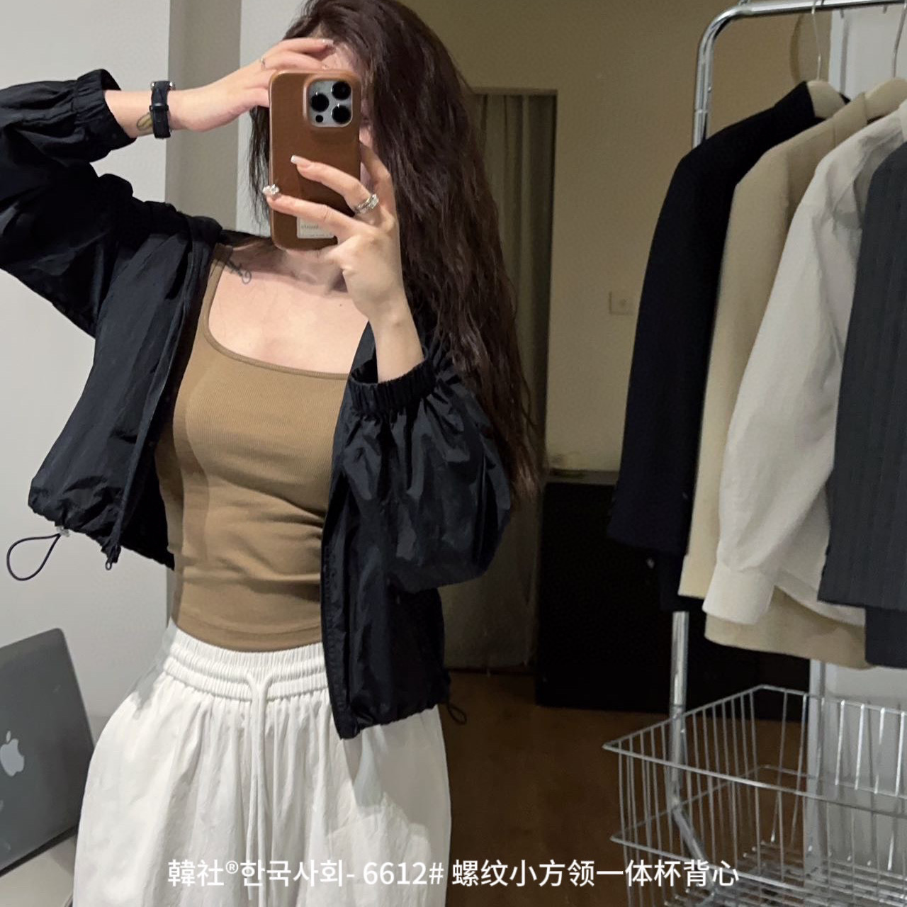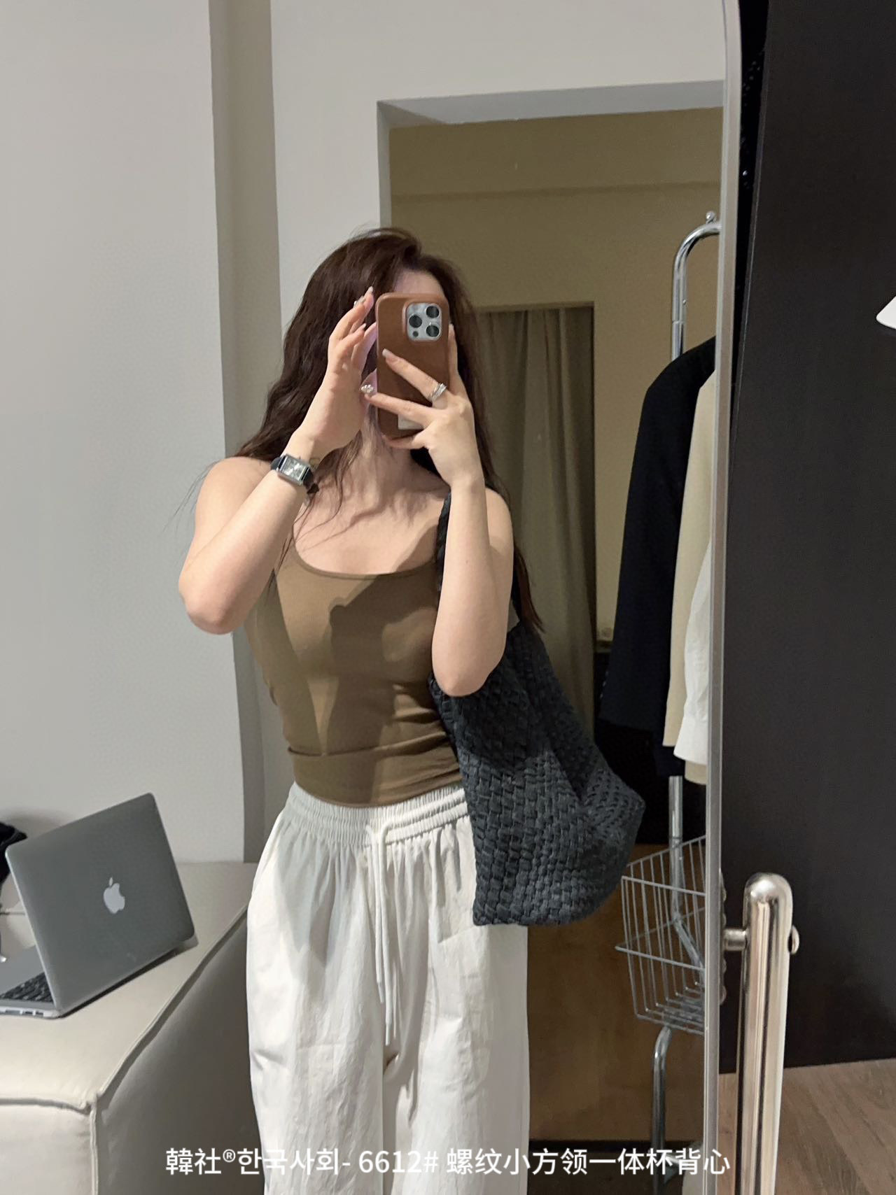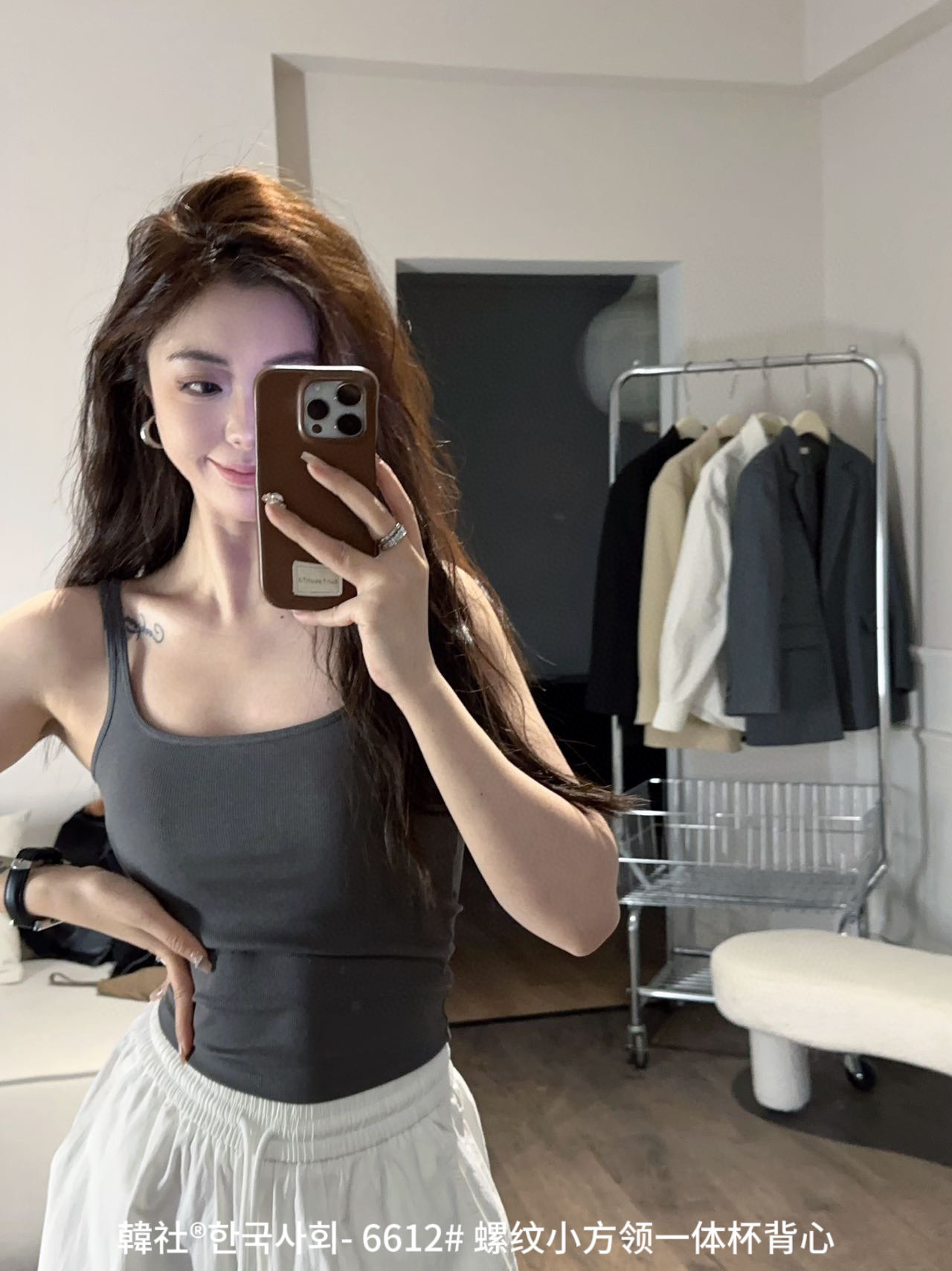 韓社®한국사회- 6612# 螺纹小方领一体杯背心