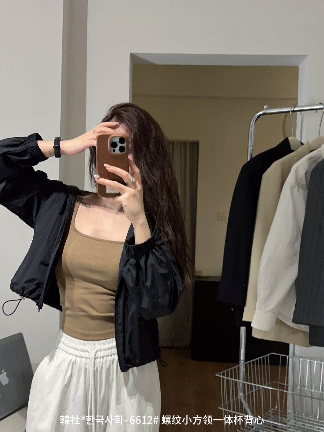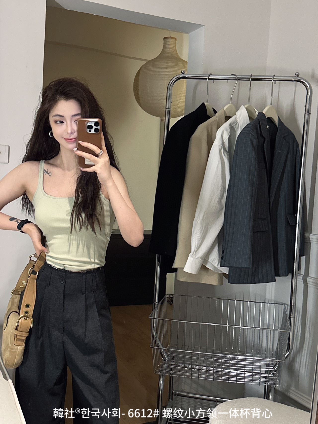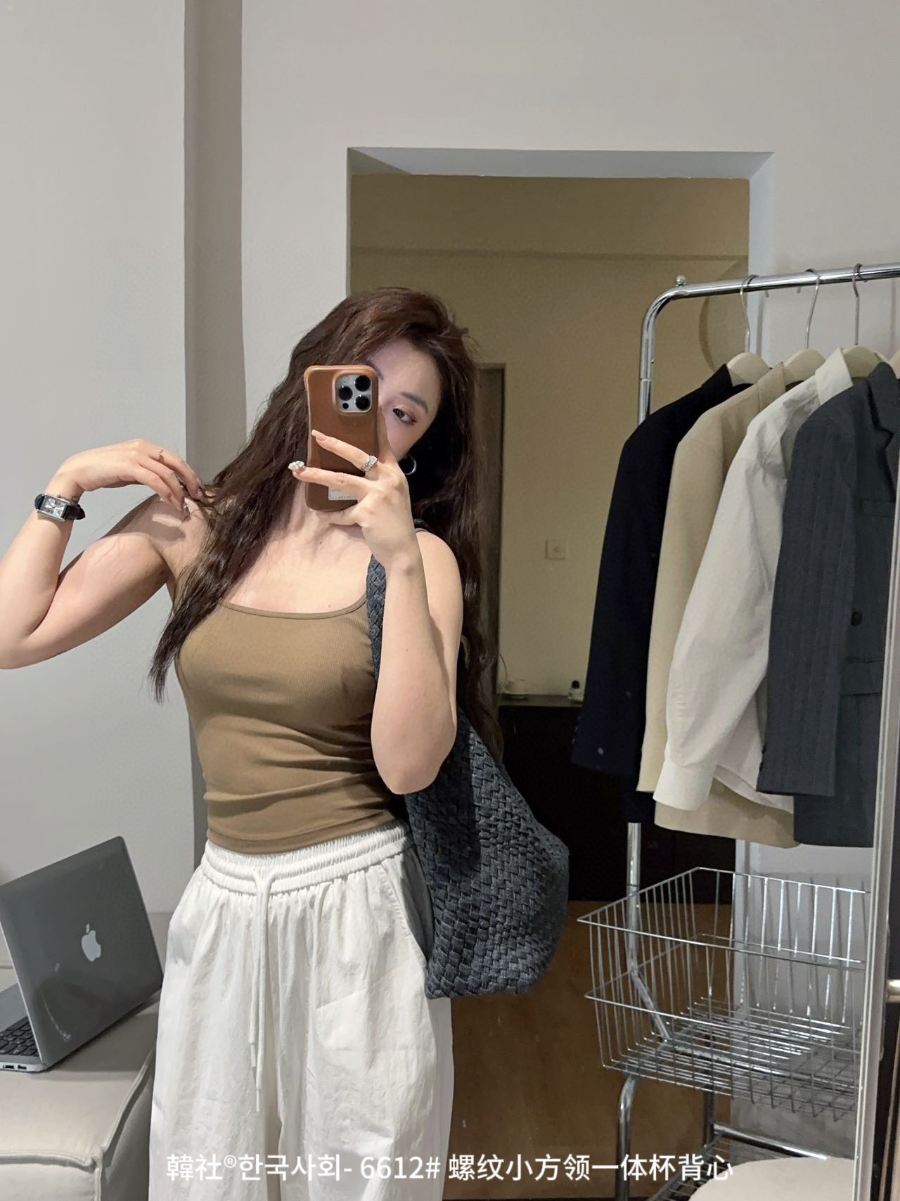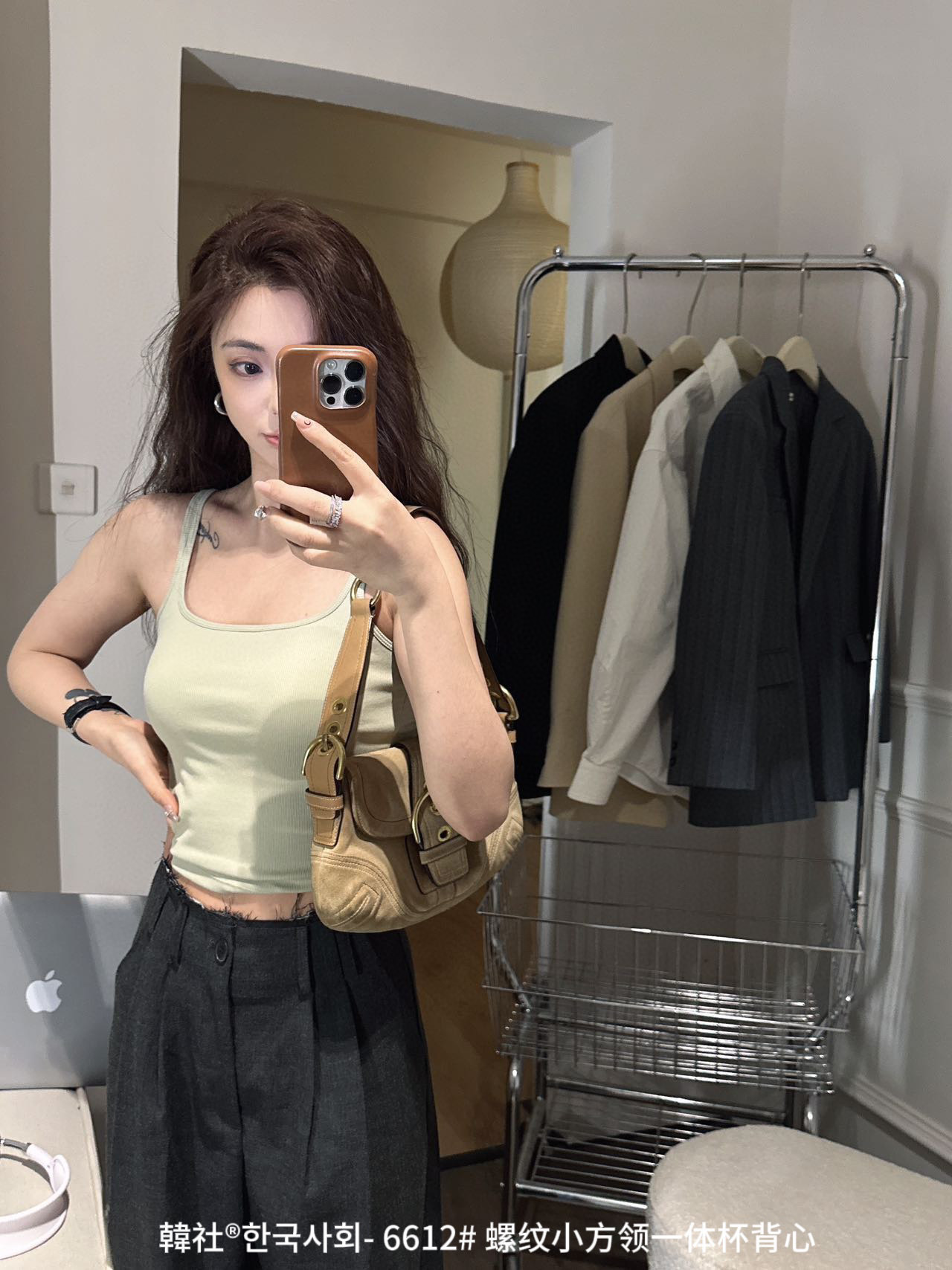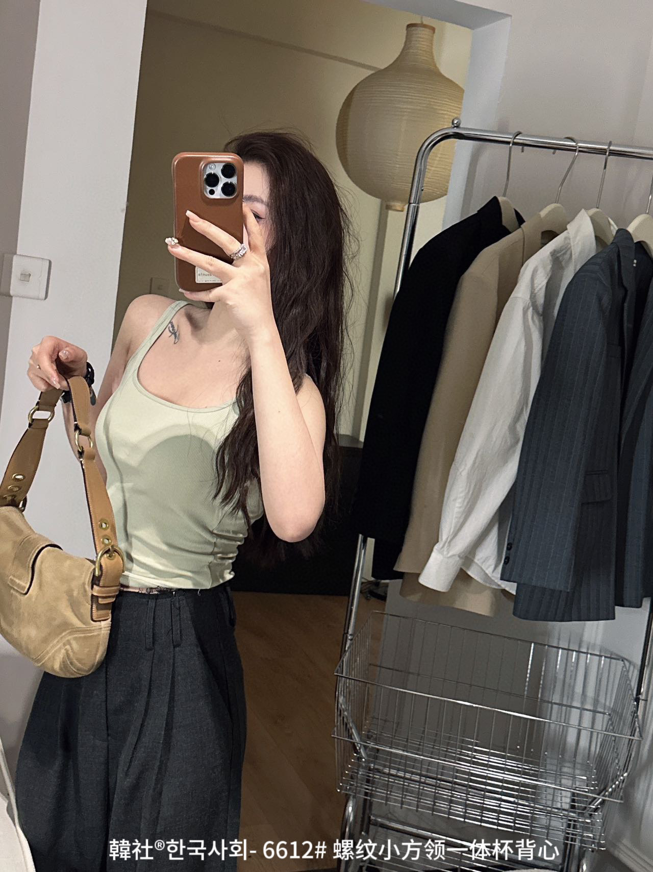 韓社®한국사회- 6612# 螺纹小方领一体杯背心