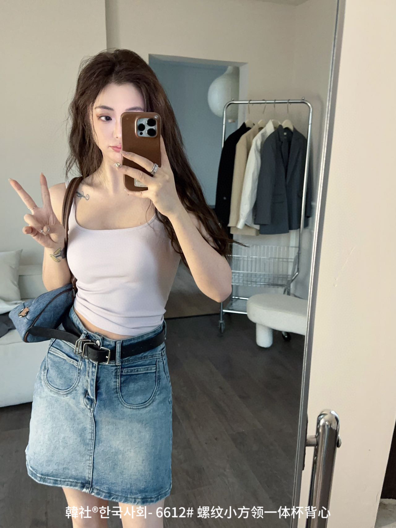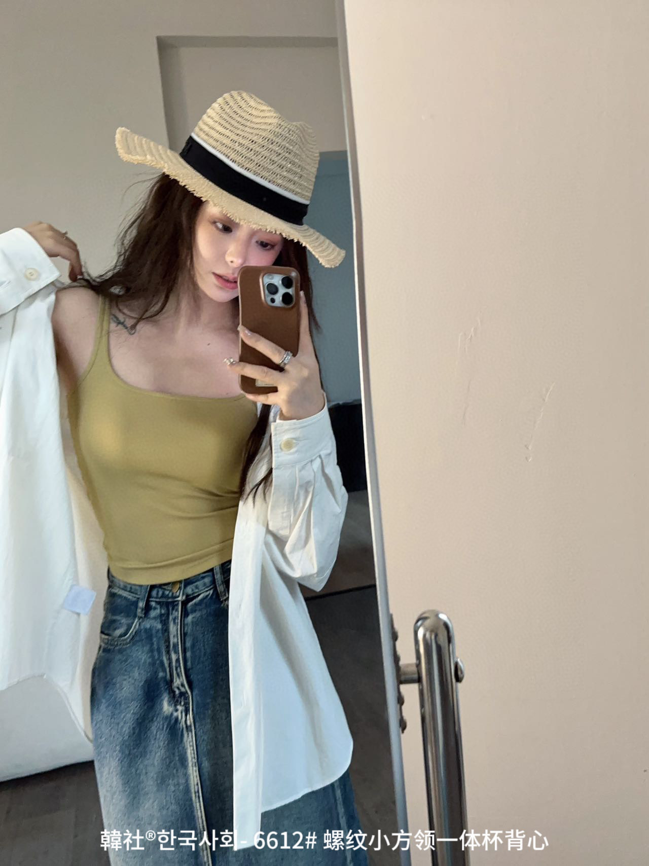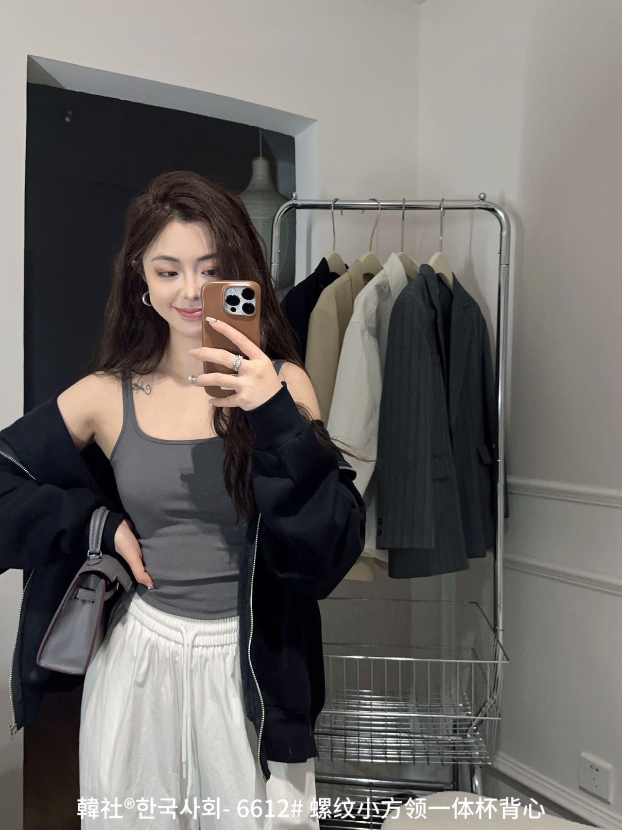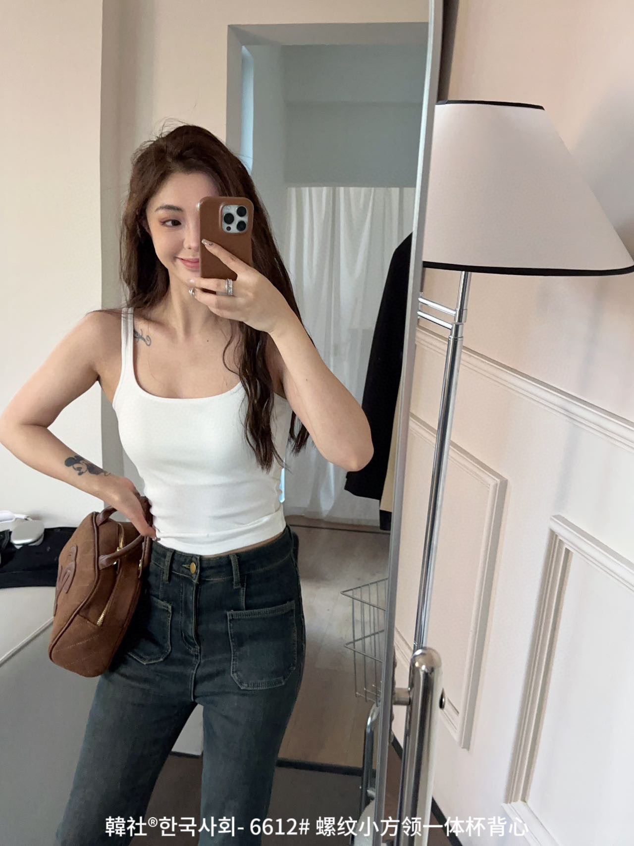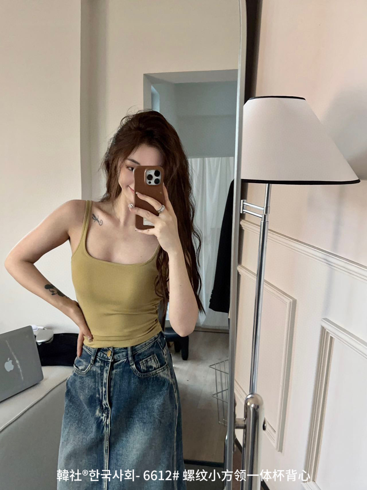 韓社®한국사회- 6612# 螺纹小方领一体杯背心