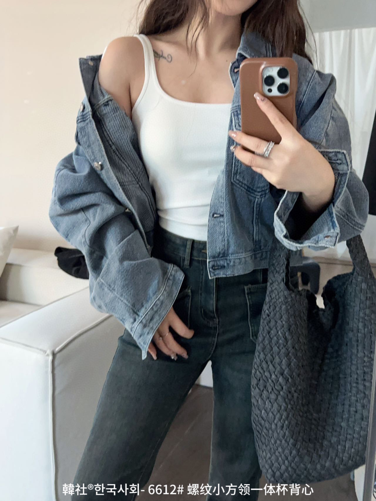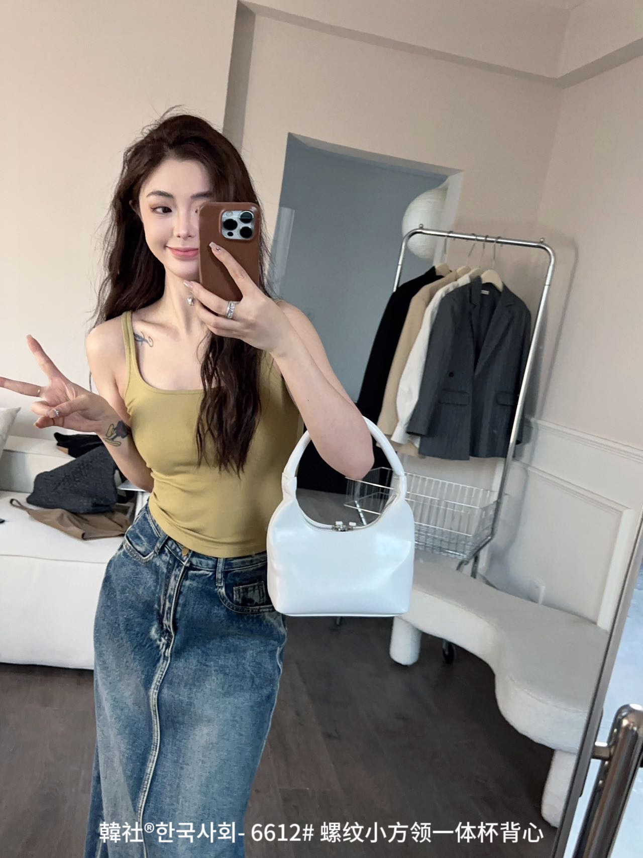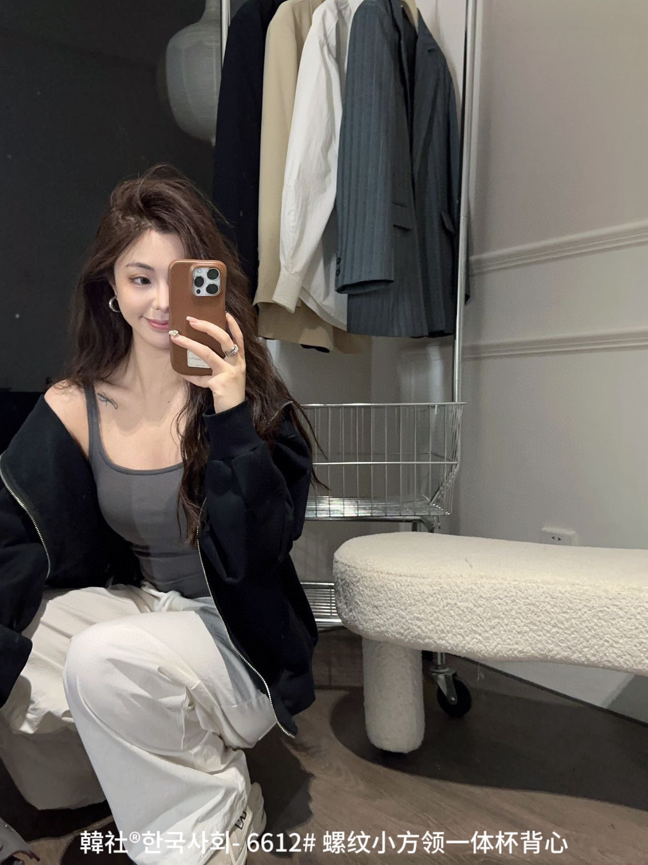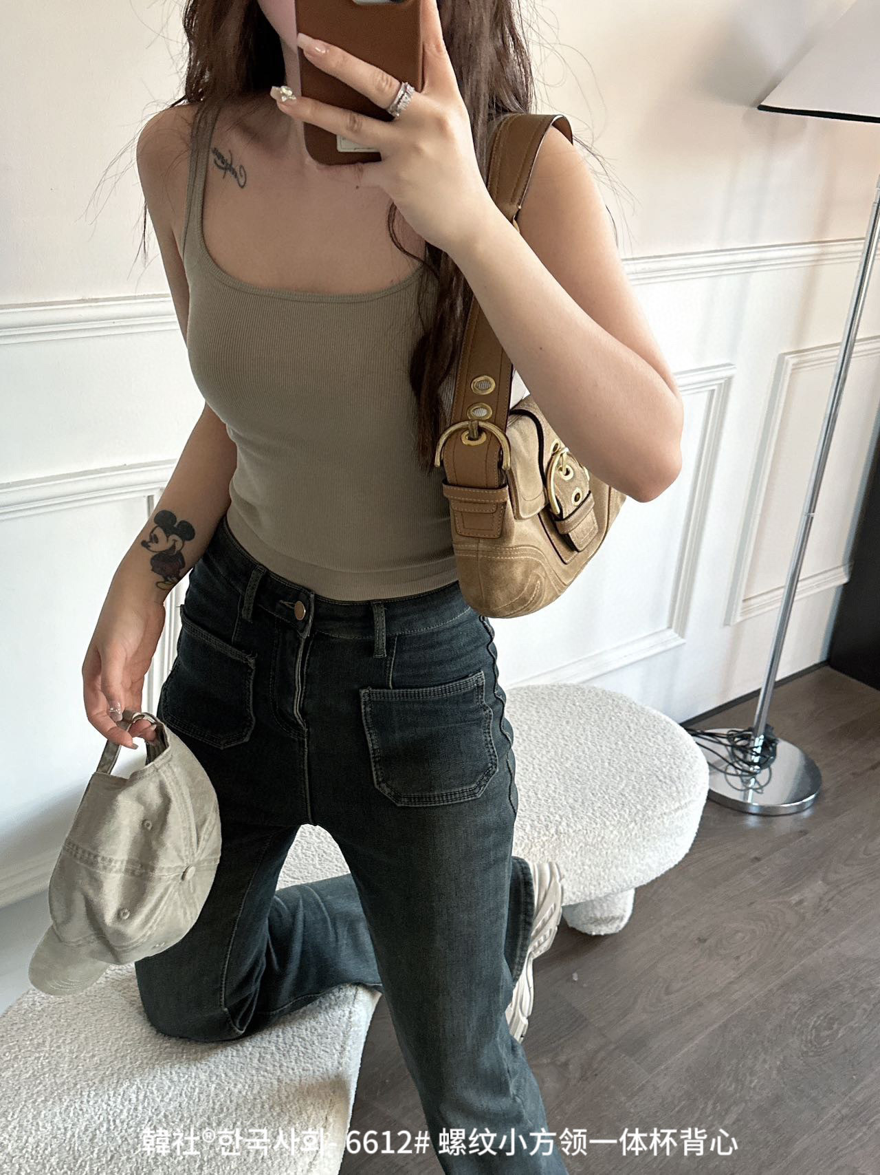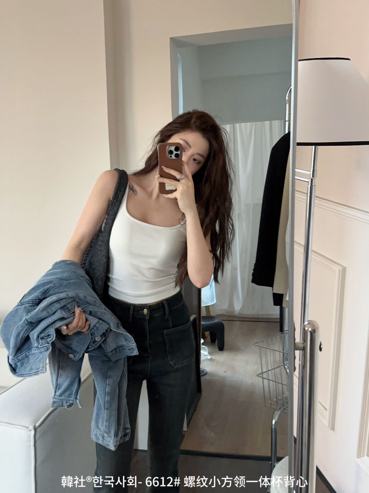 韓社®한국사회- 6612# 螺纹小方领一体杯背心