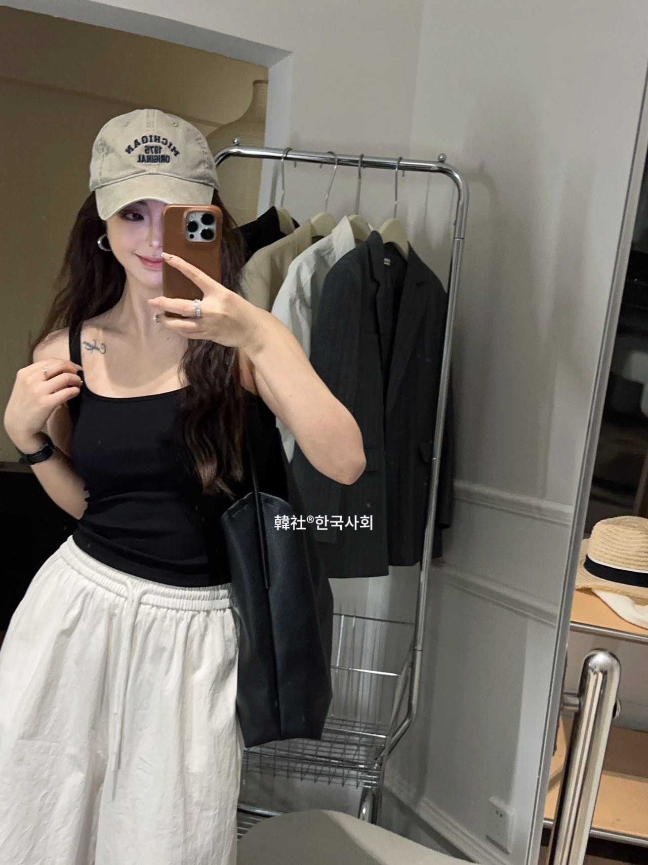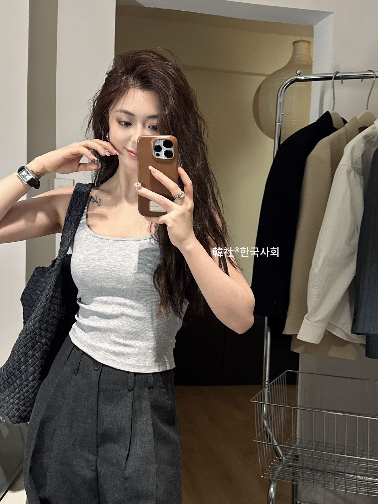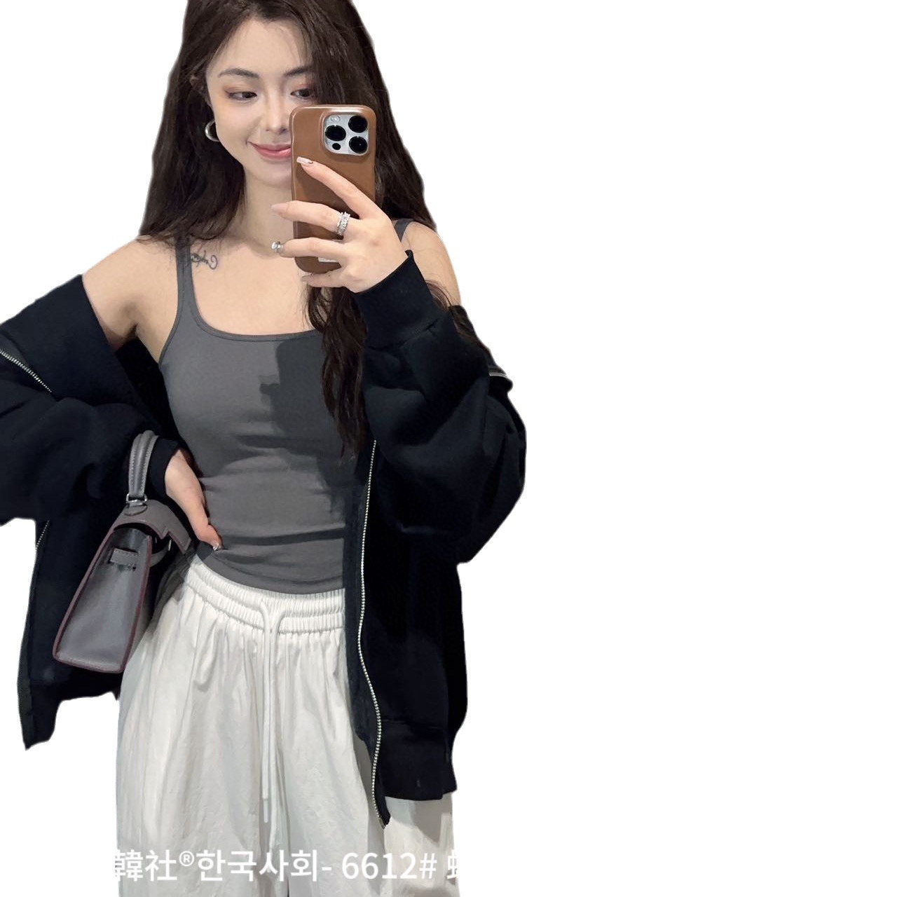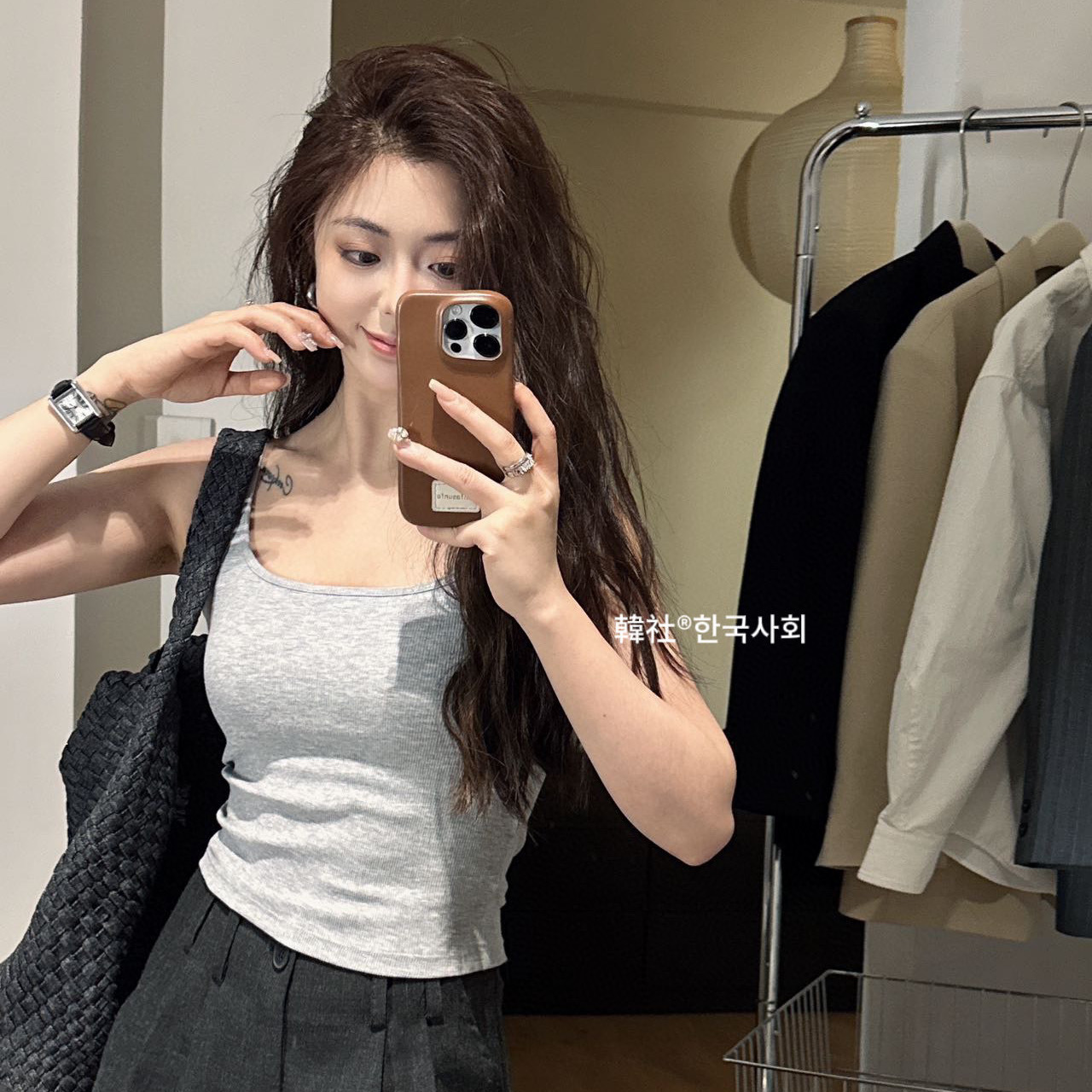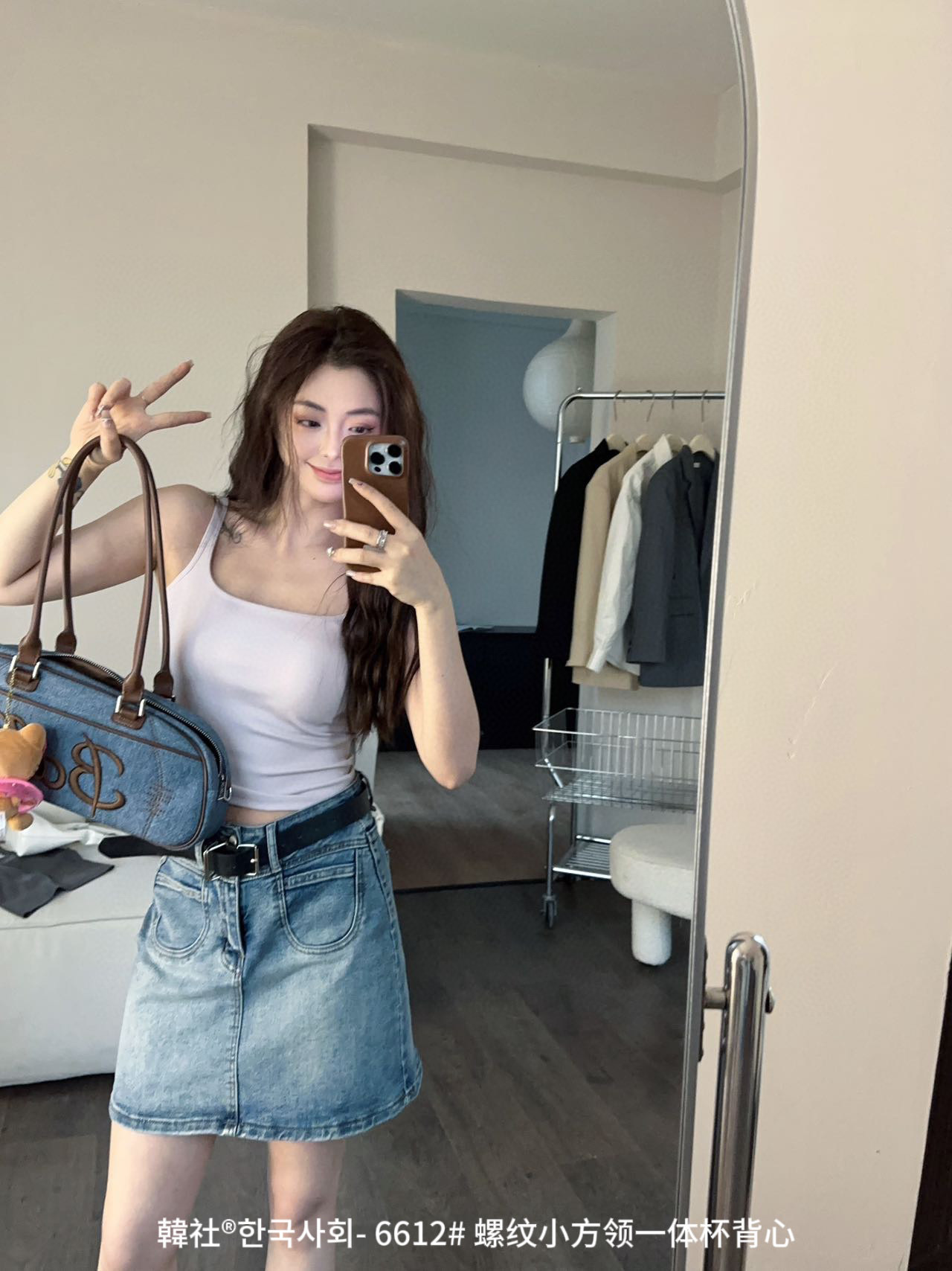 韓社®한국사회- 6612# 螺纹小方领一体杯背心