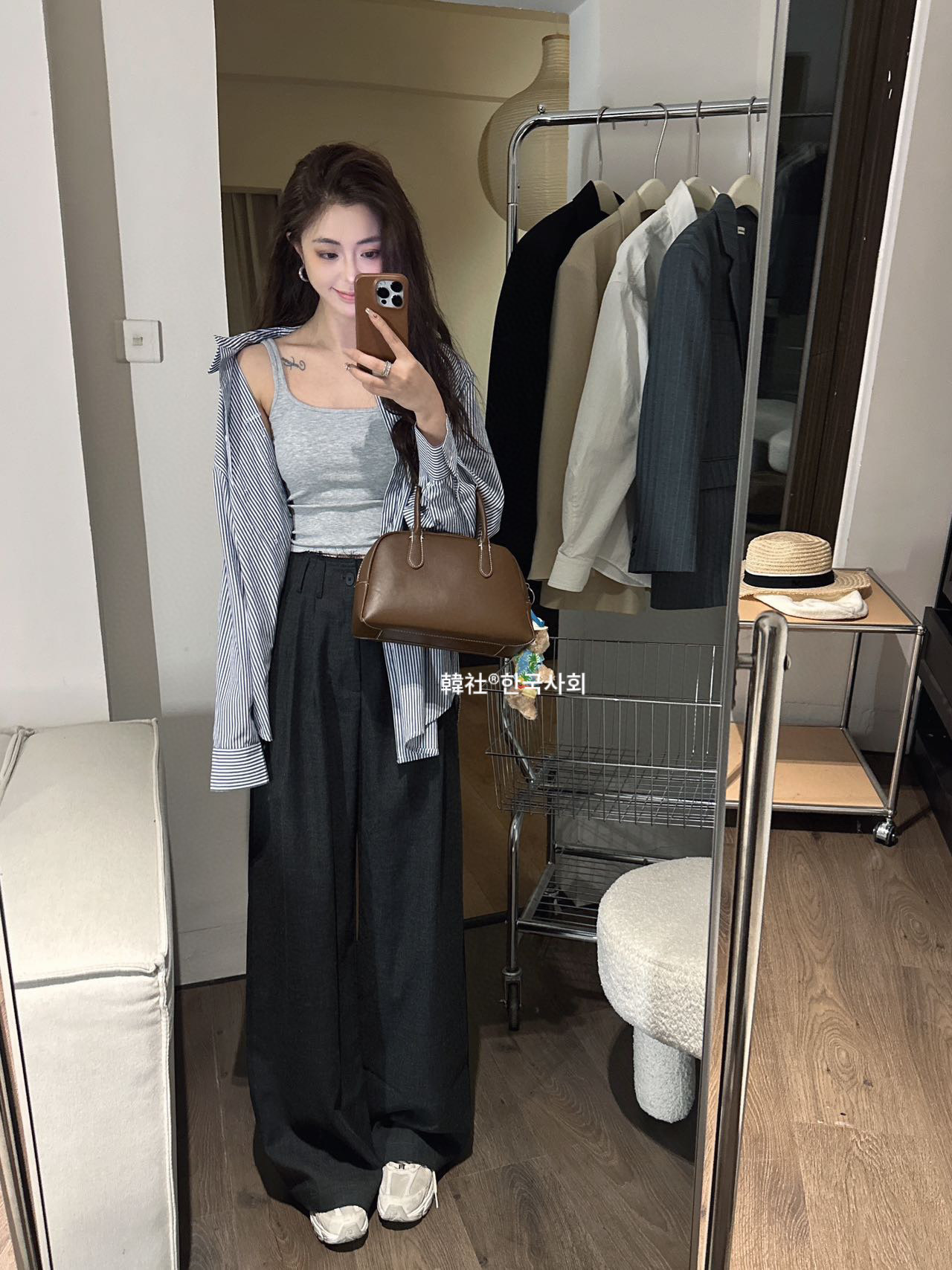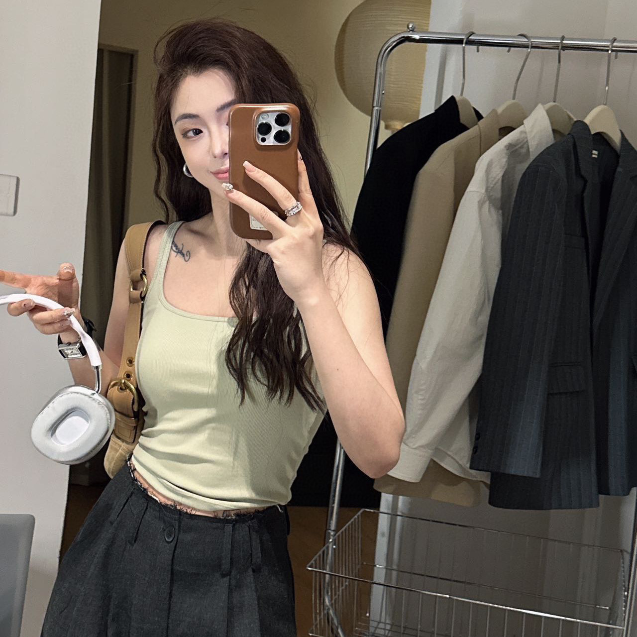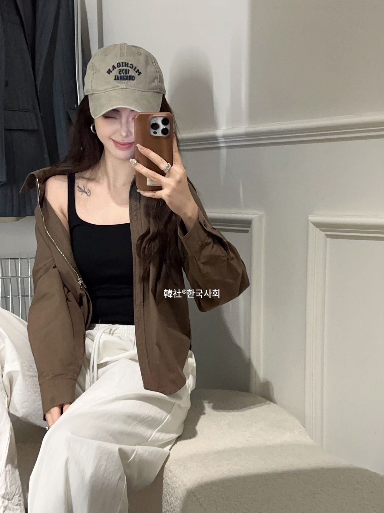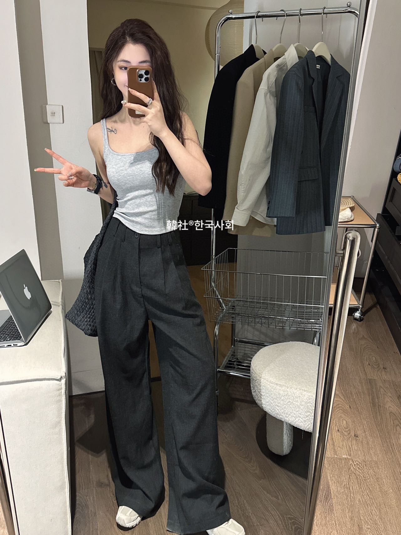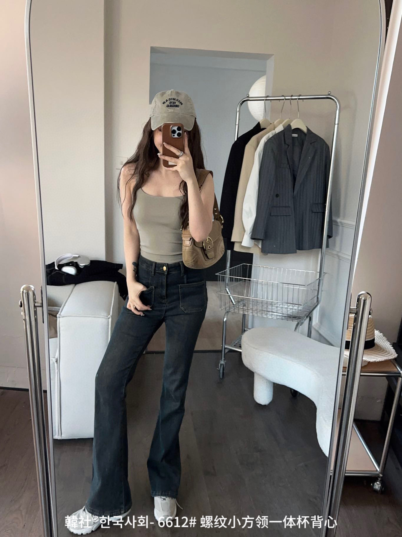 韓社®한국사회- 6612# 螺纹小方领一体杯背心