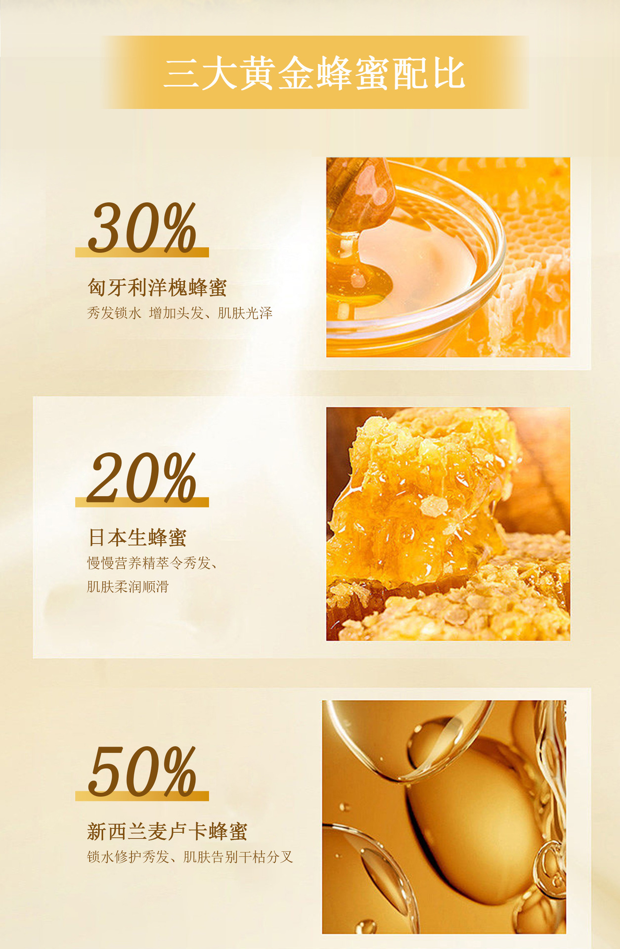 Медовый Мягкий увлажняющий шампунь 500 мл; Медовый аромат омоложения кожи гель для душа 500 мл; Маска для ухода за волосами Honey Water 500 мл