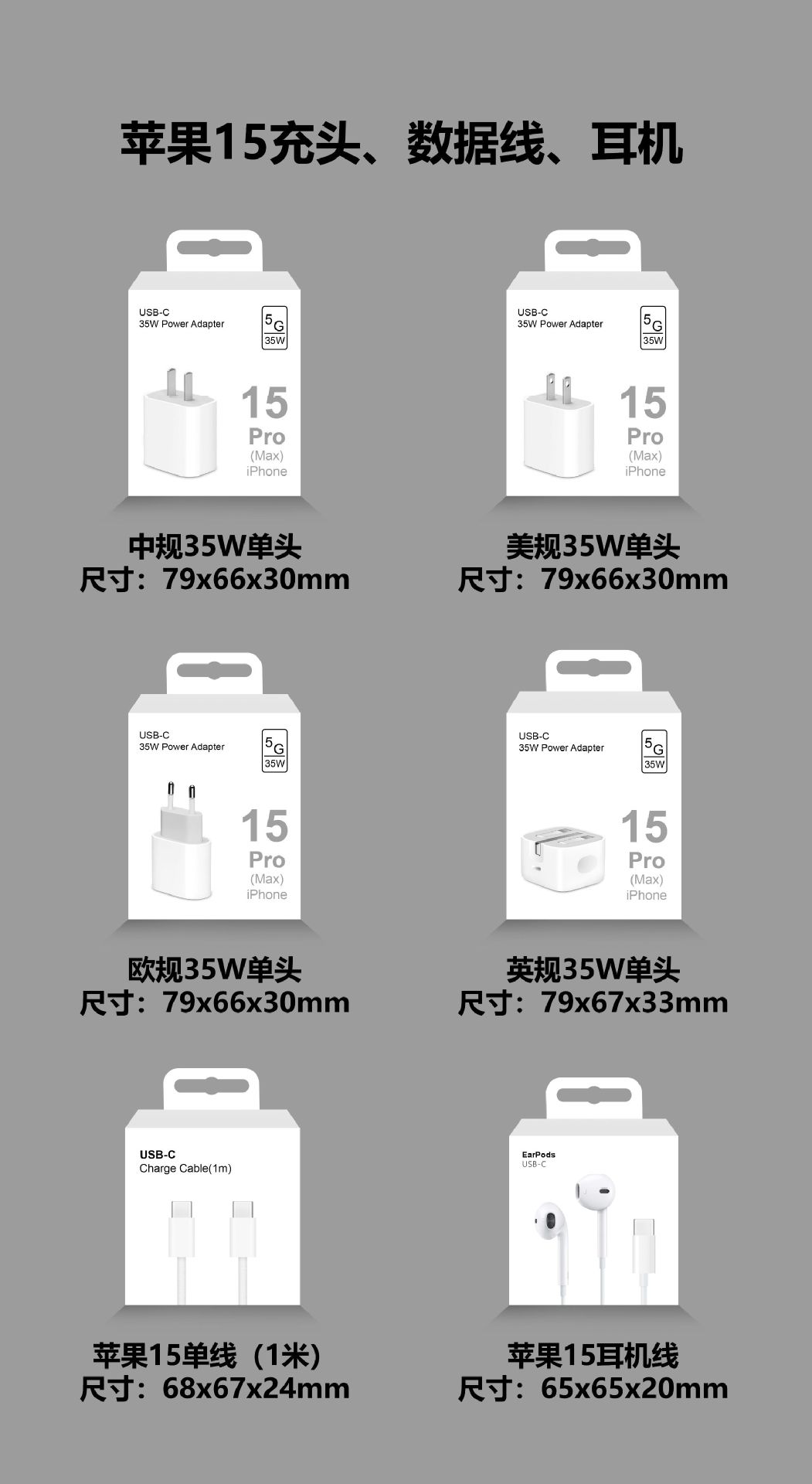 Упаковка средней заправочной головки Apple, 35 Вт; Apple 35W США датчик полная голова упаковка; Apple 35W Европейский датчик наполнения головки упаковка; Британская упаковка Apple 35W с полной головкой; Apple 15 кабель для зарядки (1 м) упаковка; Линейная упаковка для наушников Apple 15
