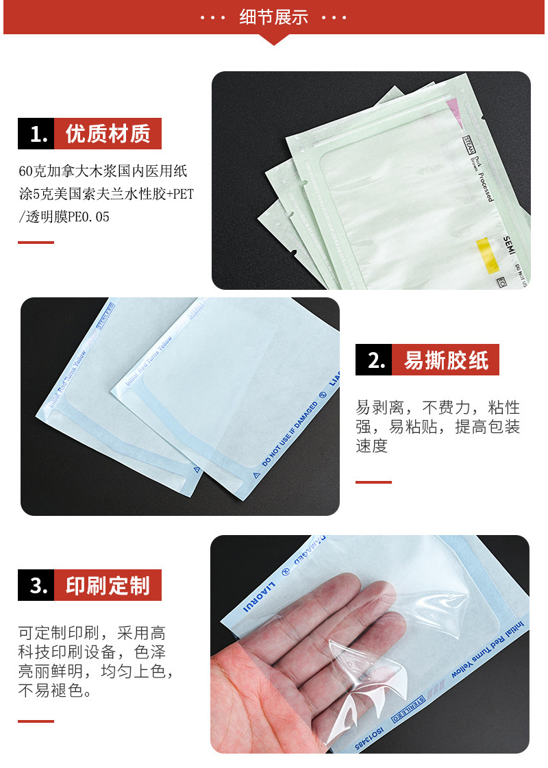 Индивидуальная стерилизационная упаковка для медицинских инструментов: бумага для диализа, водонепроницаемые одноразовые медицинские стерилизационные пакеты, бумажно-пластиковые пакеты, упаковка для стерилизации оксидом этилена на заказ
