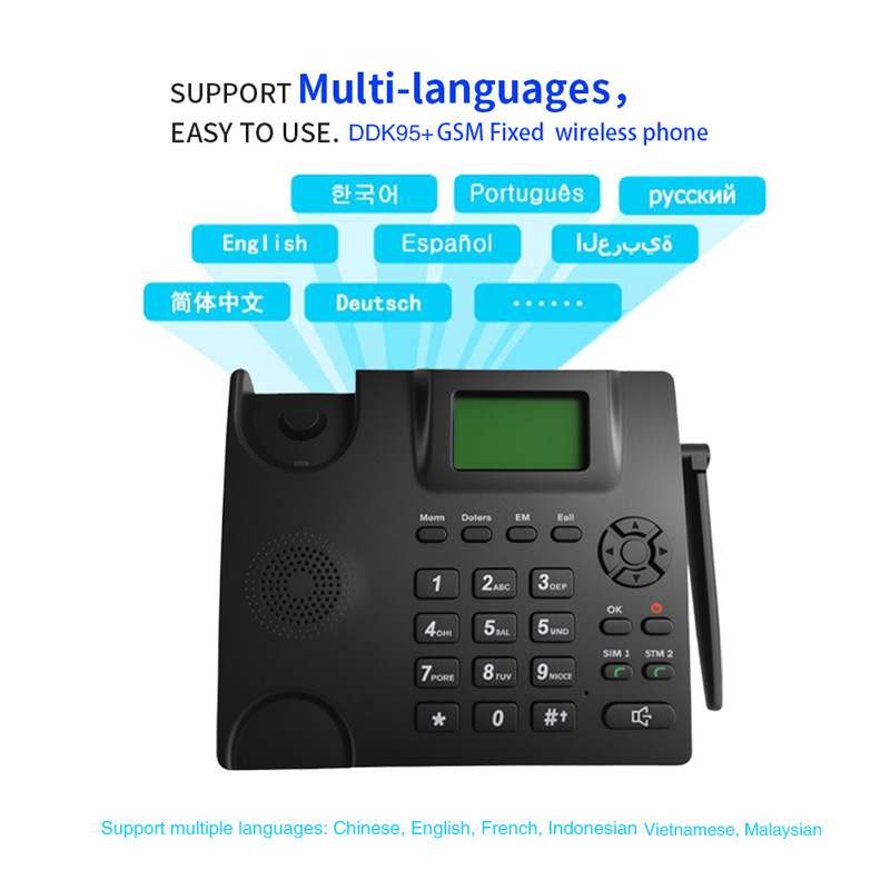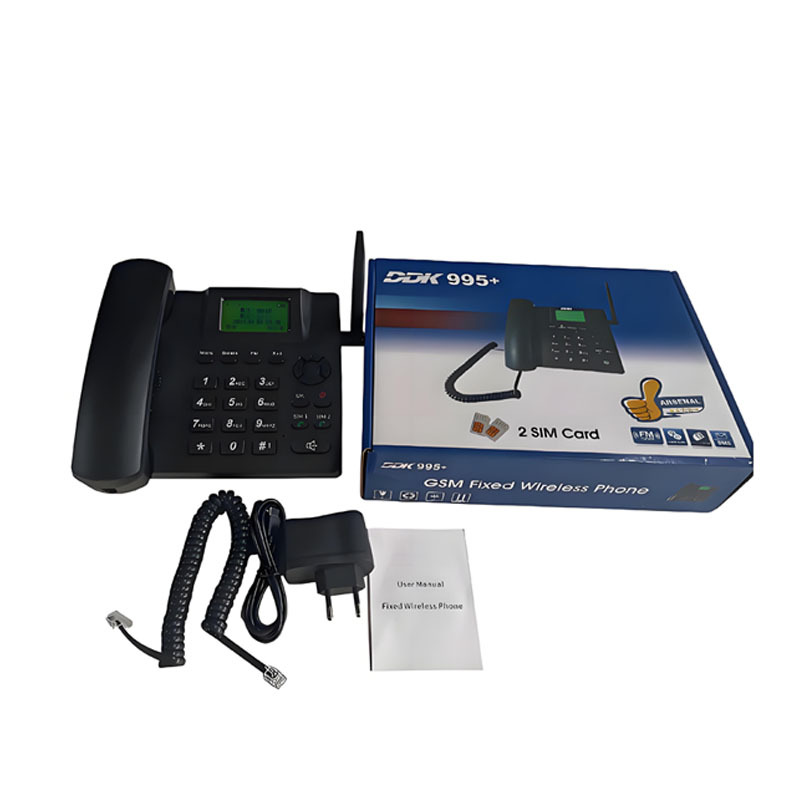 Беспроводной карточный телефон DDK995+GSM поддерживает многоязычные функции, две SIM-карты, для бизнеса и домашнего использования, а также функции стационарного телефона.