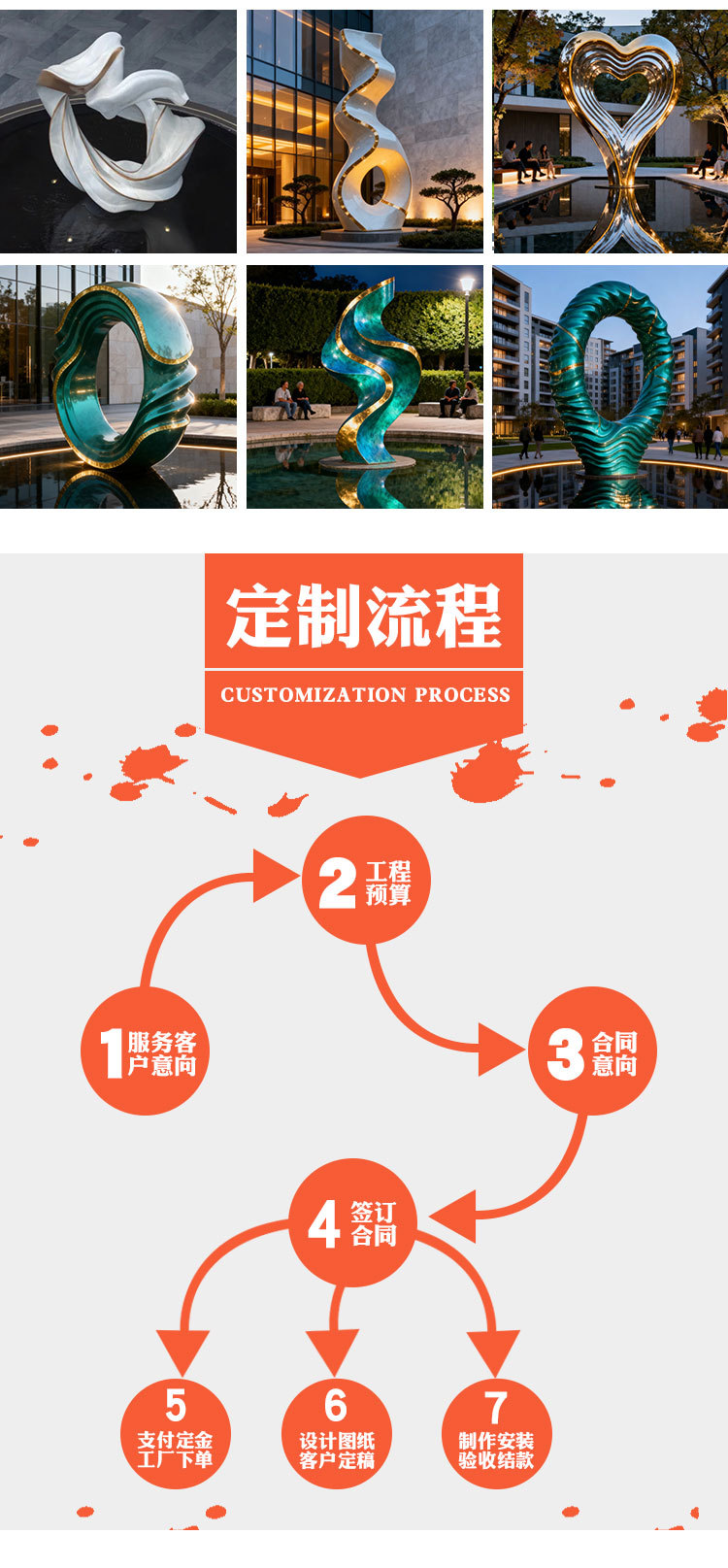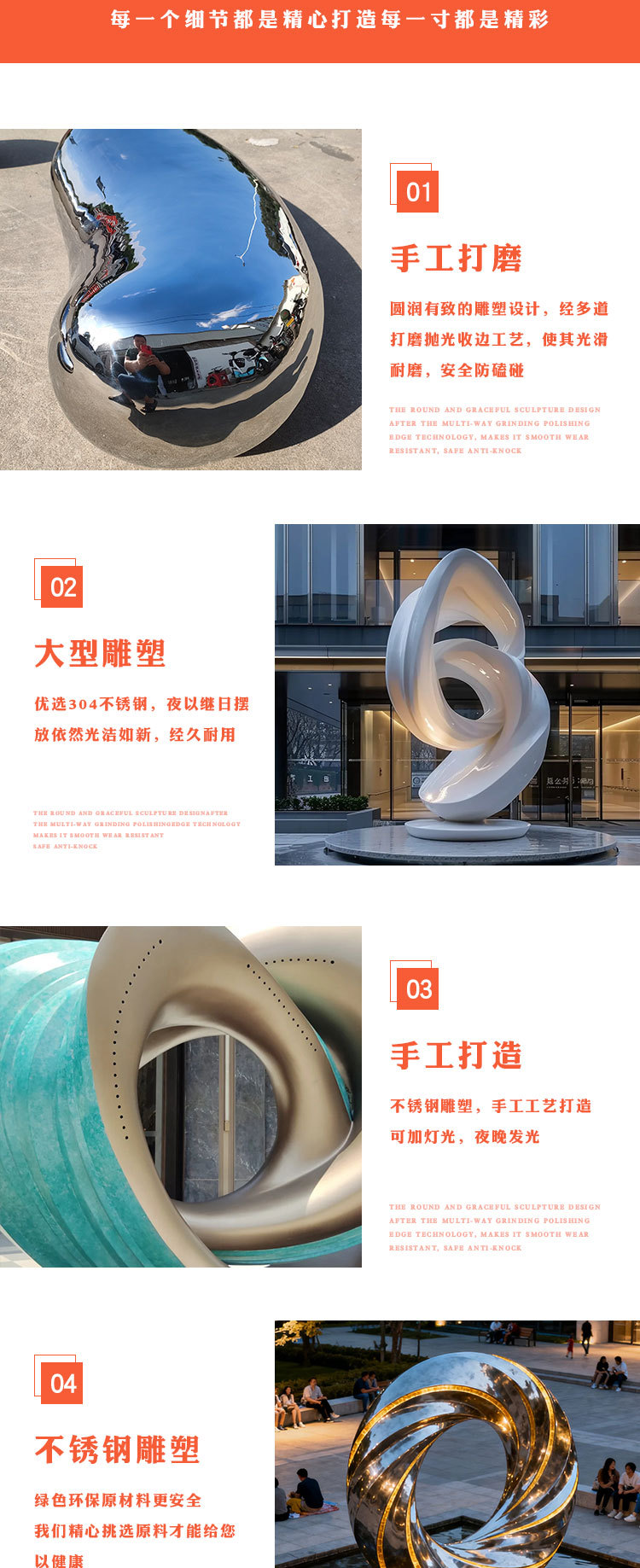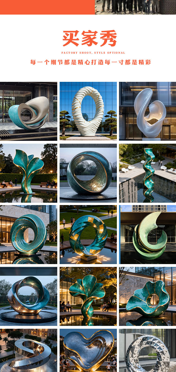 Производитель изготавливает на заказ большие уличные скульптуры из нержавеющей стали для торговых центров, офисов продаж отелей, площадей и парков.