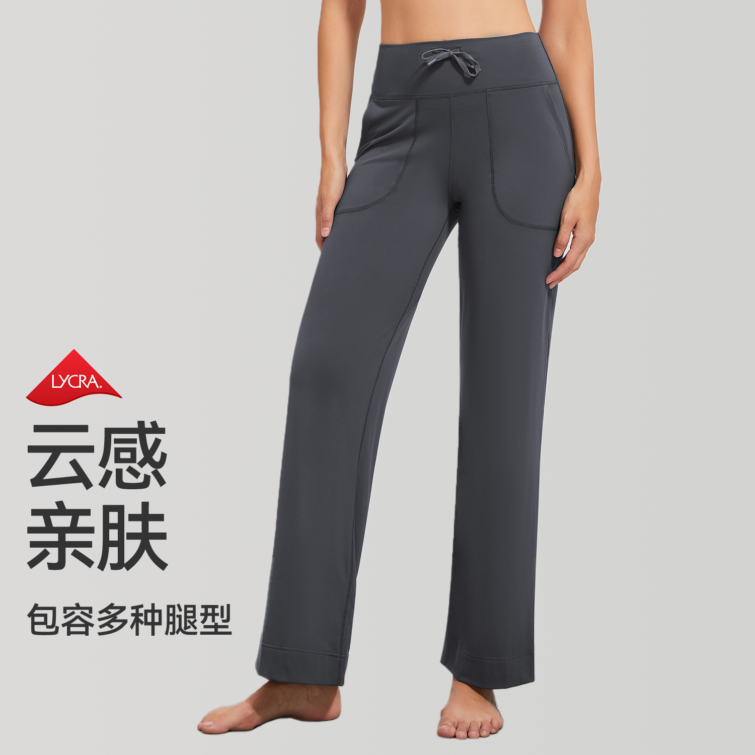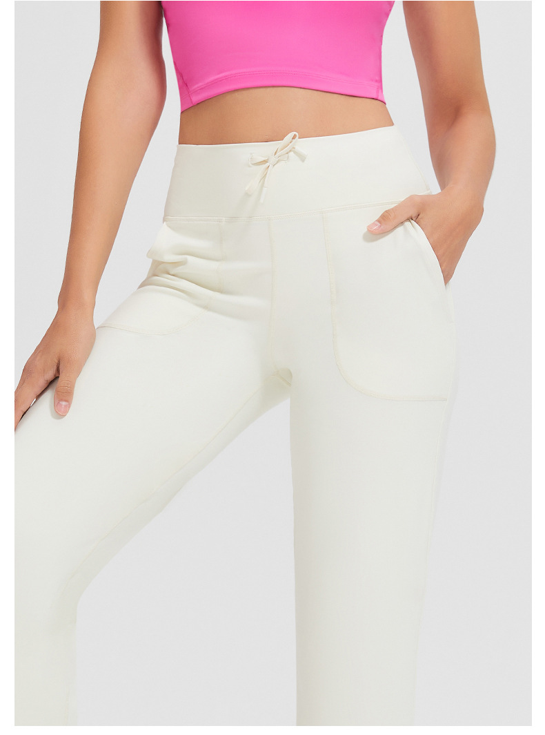 Женские широкие брюки телесного цвета с завязками, эластичные утягивающие брюки с высокой талией и драпированные спортивные повседневные расклешенные брюки для йоги длиной до пола.