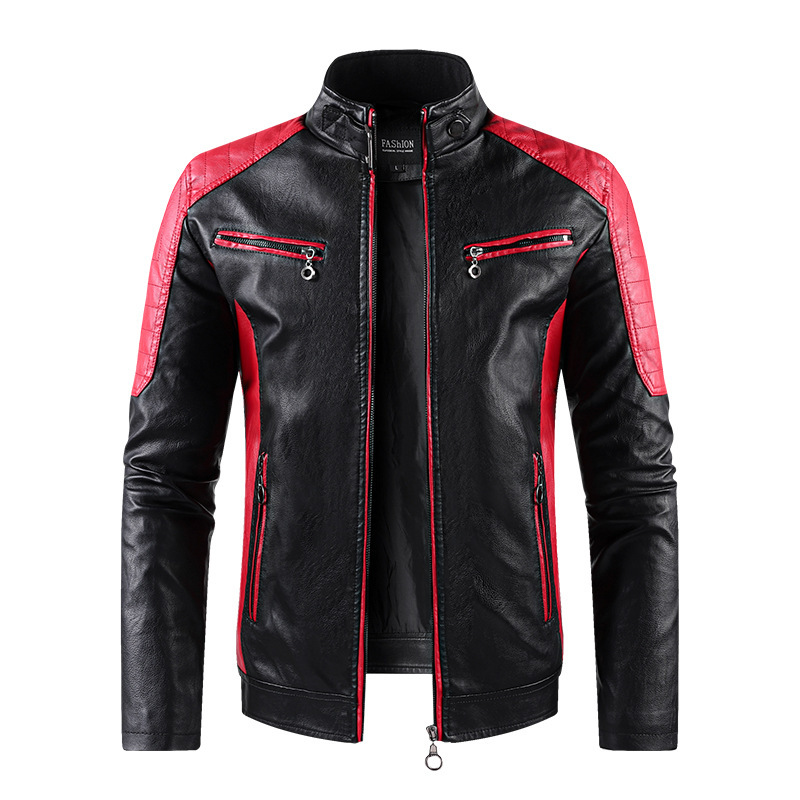 Кожаное пальто европейского размера, Мужская Внешняя торговля, трансграничная Amazon, мужской кардиган с воротником-стойкой, соответствующий цвету, модное повседневное кожаное пальто