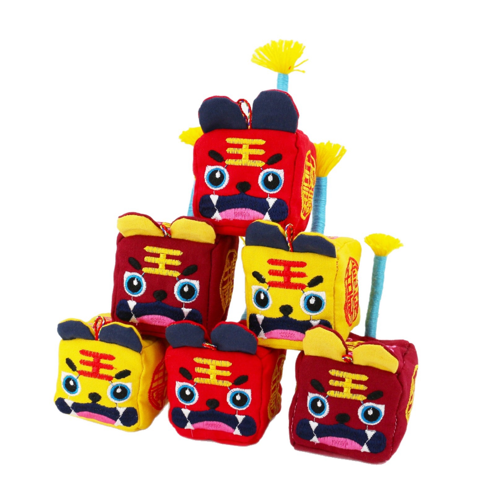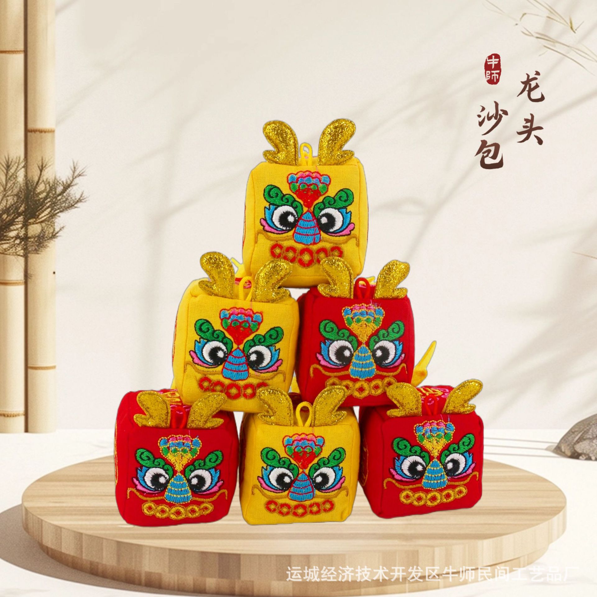 Декоративное изделие в виде головы дракона (зодиакальный знак) и тигра, вышивка, подвесное украшение, народное ремесло, символ мира и радости, для мужчин и женщин