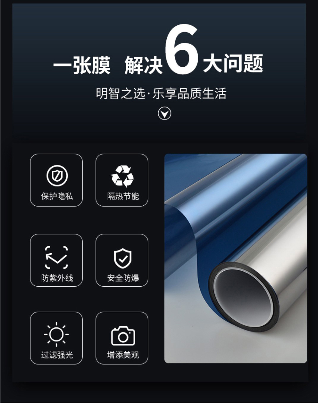 Черная теплоизоляционная пленка Окно Солнечный свет Комната односторонняя перспектива Светоотражающая Солнечная пленка Солнцезащитная стеклянная пленка Полное затенение
