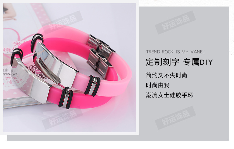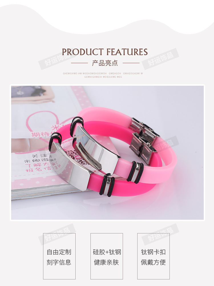 Фабрика Прямые поставки титана стали ювелирные изделия силиконовый Баскетбол Спортивный Браслет выгравированный логотип из нержавеющей стали пара браслет оптом