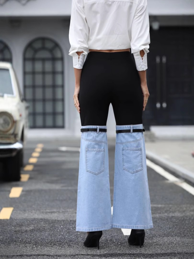 Трансграничные Амазонские модные тонкие трикотажные джинсовые швы с эластичной талией и широкими штанинами повседневные брюки темпераментные Пригородные Большие размеры