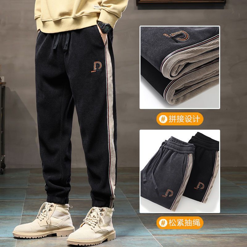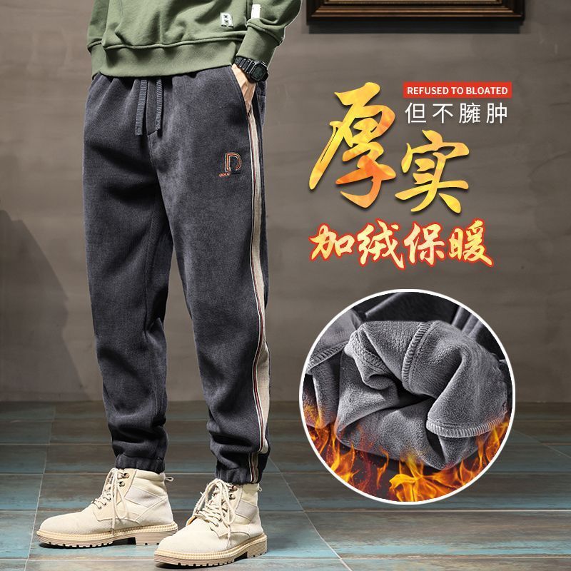 Мужские зимние утолщенные Модные свободные вельветовые спортивные штаны с завязкой на щиколотке, повседневные брюки на флисовой подкладке, мужские теплые спортивные штаны