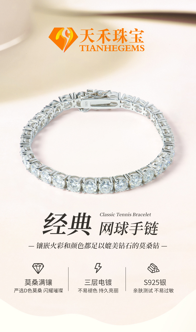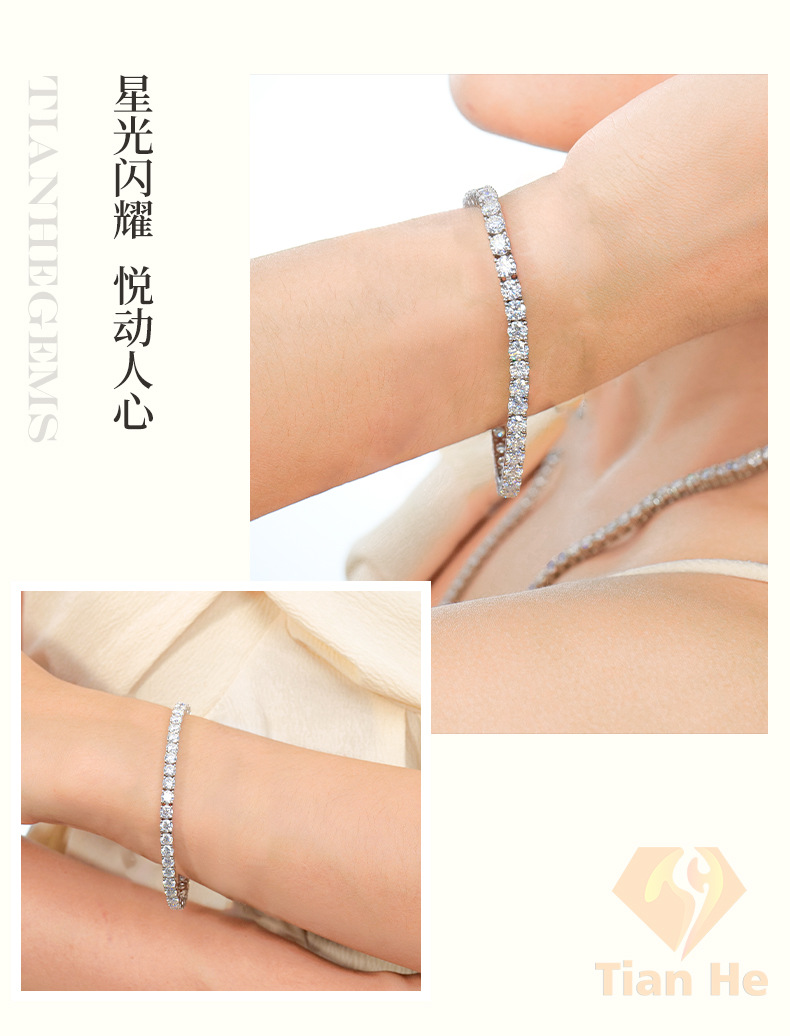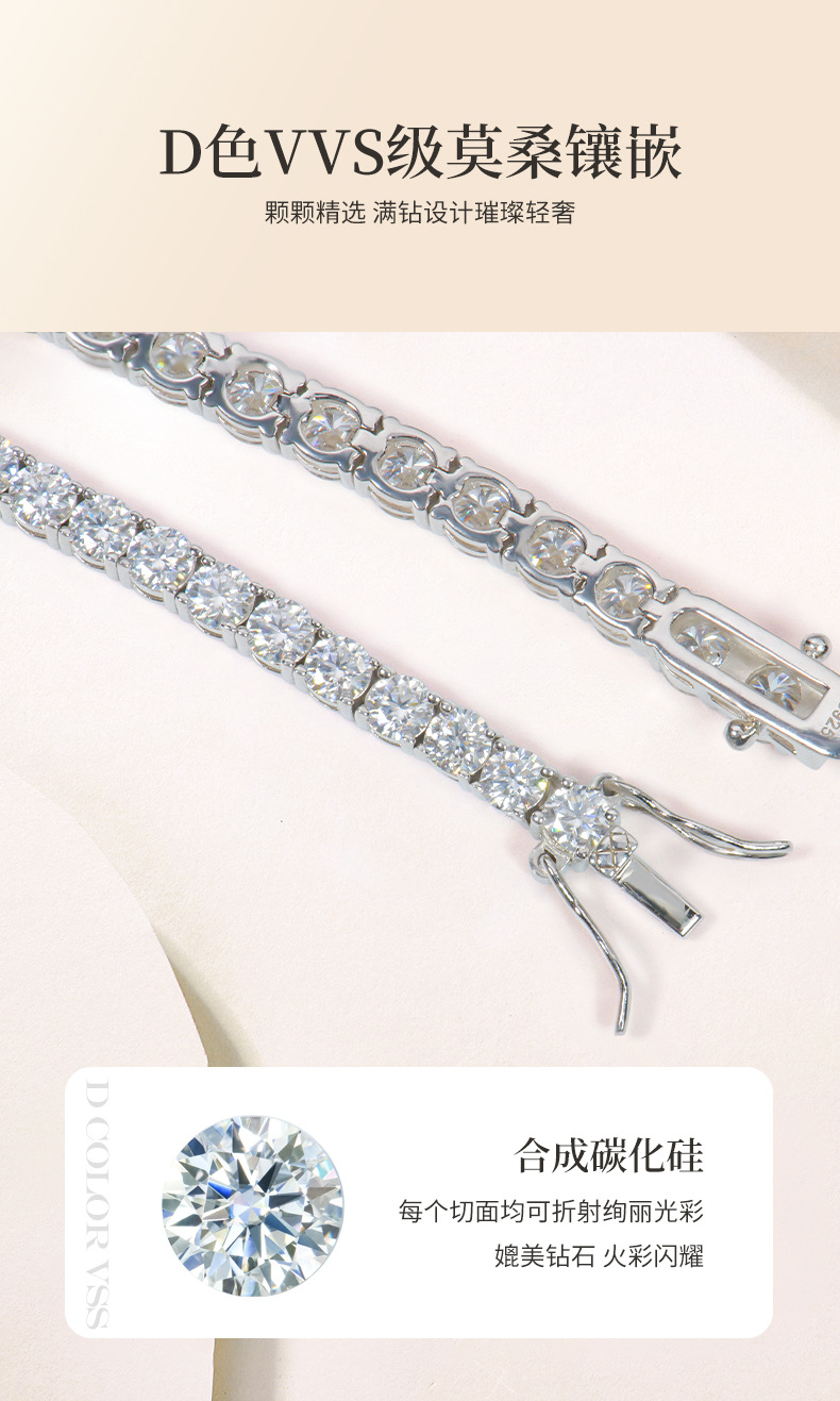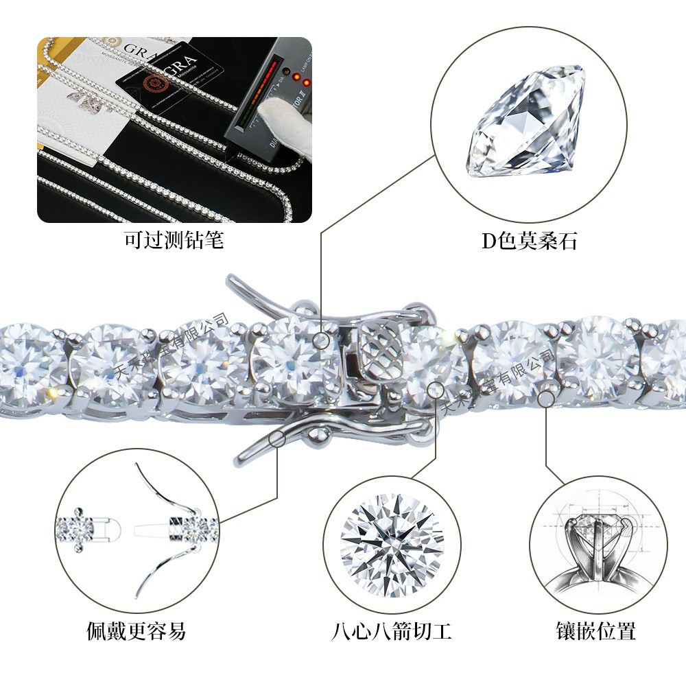 Браслет из серебра S925 с инкрустацией моассанитом, однорядный, с позолоченной круглой цепочкой-тенниской, женское украшение для международной торговли
