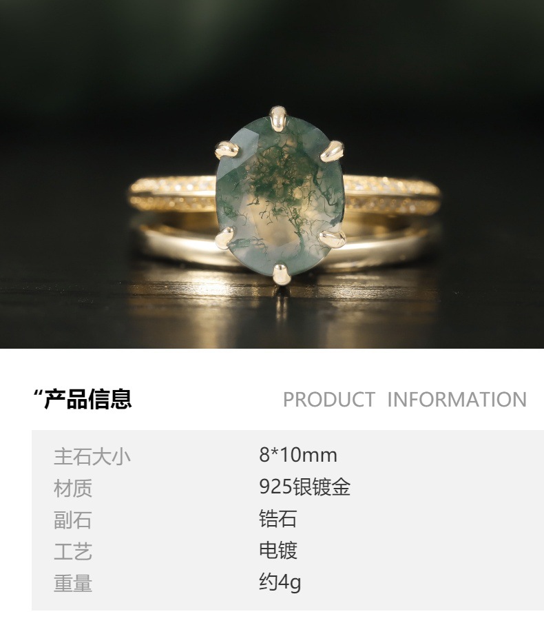 Европейское и американское трансграничное кольцо из натурального водного агата с простым набором из стерлингового серебра S925, не может перестать цвета