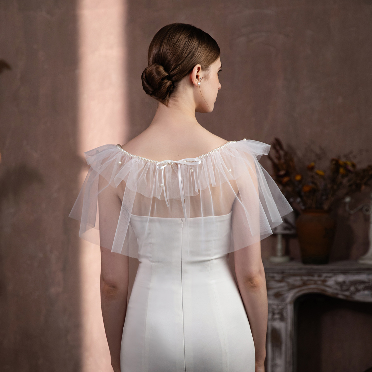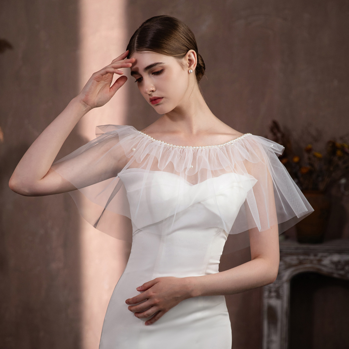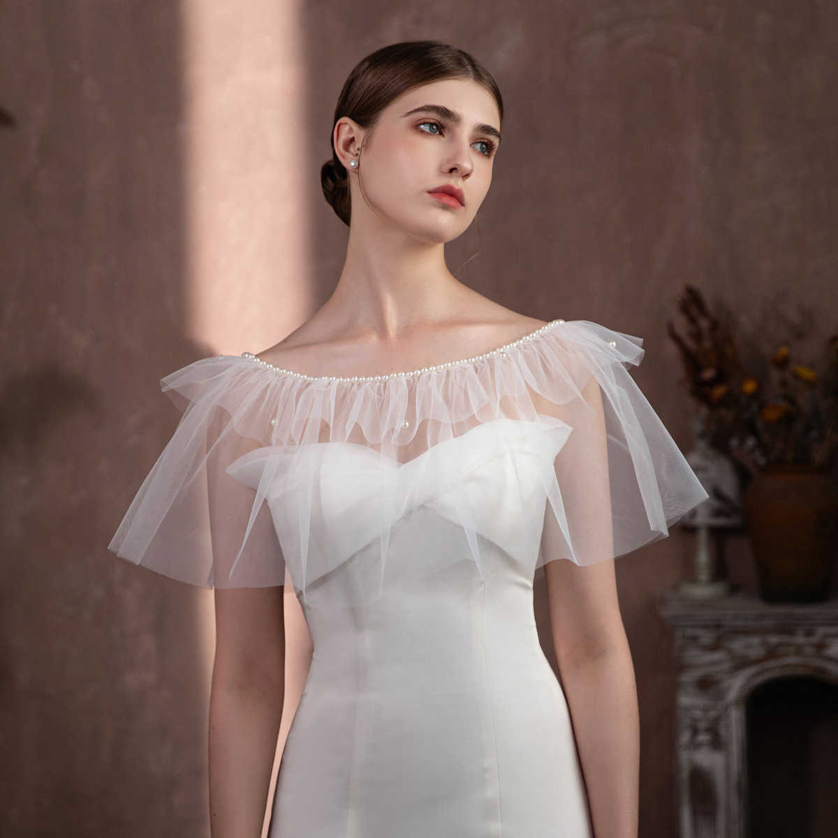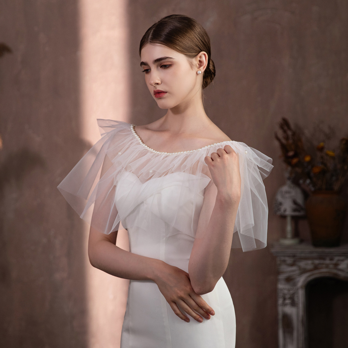 V322 Супер Фея Белый Жемчуг Раффлед Невесты Свадебное Платье Покрытие Руки Похудение Шапель Аксессуары