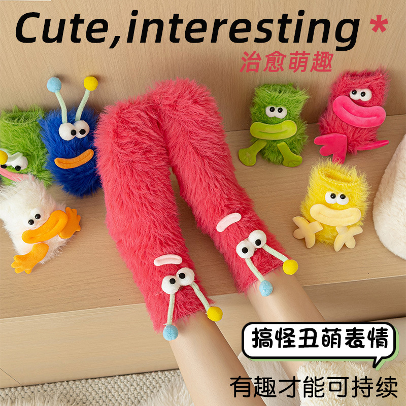Коралловые бархатные носки женские смешные выражения уродливые носки, толстые и теплые мультяшные милые плюшевые носки