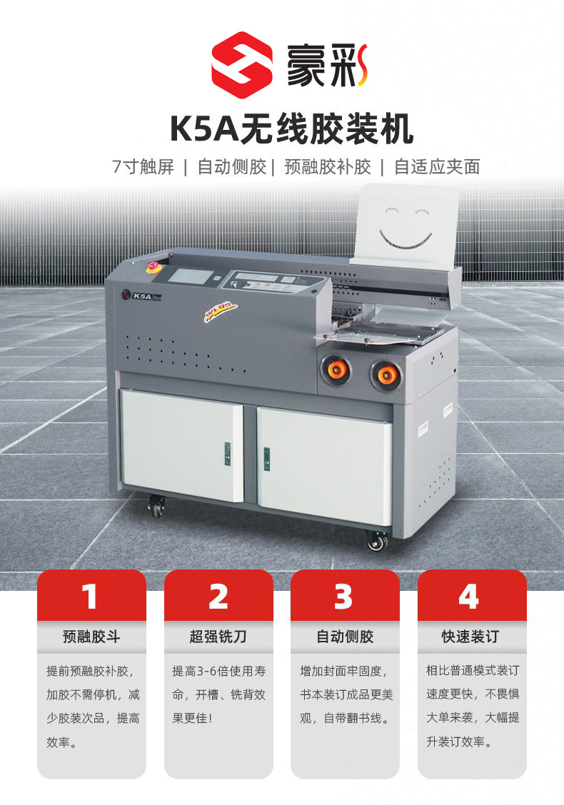 Haocai K5A двойное резиновое колесо с боковым клеем экономичная Беспроводная клеевая машина A4 нежная переплетная машина оберточная машина клеевая машина