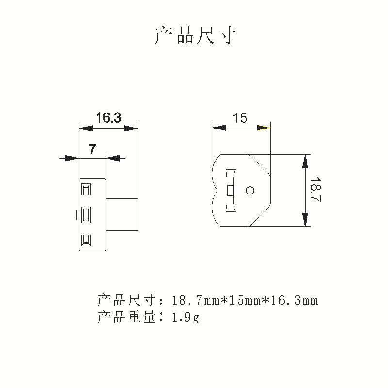 产品尺寸:18.7*15*16.3mm