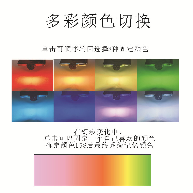 ● 这是一款USB供电的LED灯,可以选择8种颜色的单色固定照明或渐变照明。