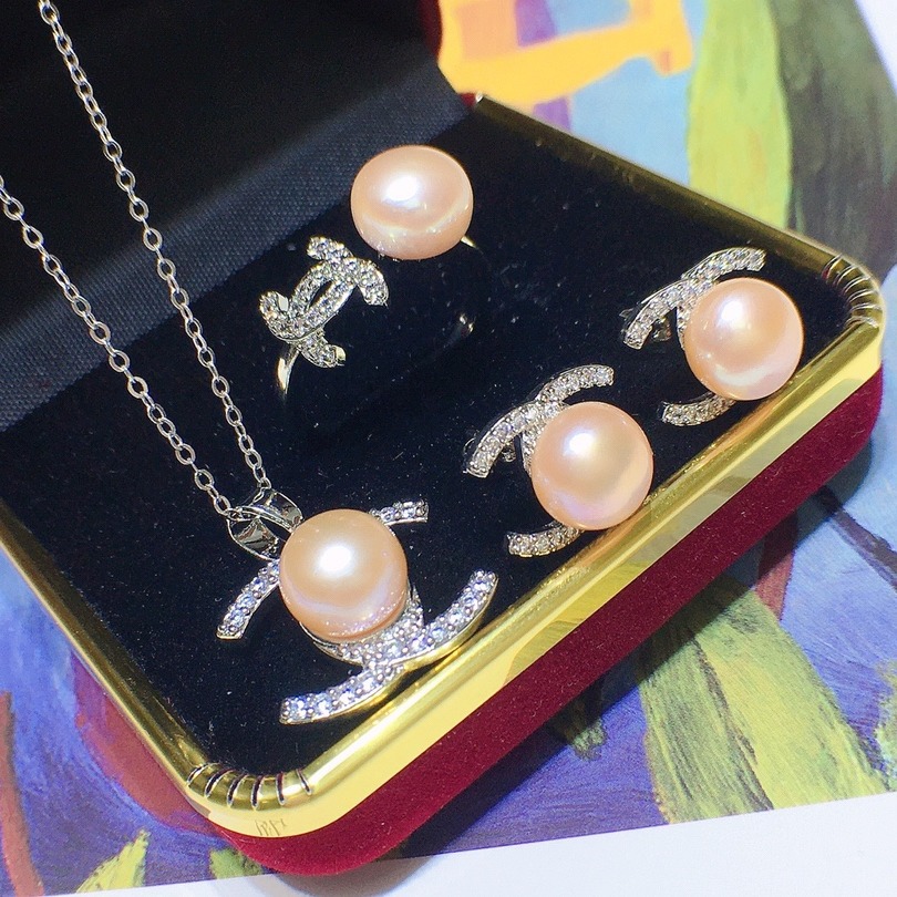 Прямые поставки пресноводного жемчужного ожерелья серьги Кольцо Кулон Универсальный простой универсальный модный прилив цепи ключицы