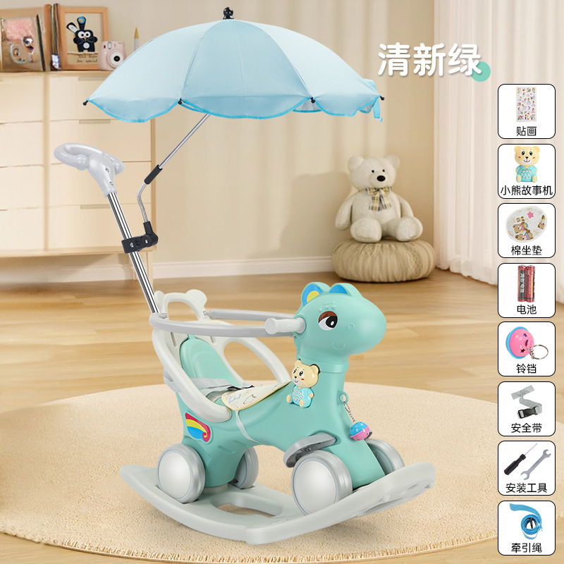 Зеленая лошадка три в одном; Розовая лошадка три в одном; Молочно-белая лошадка три в одном; Зеленая лошадка четыре в одном + Зонт; Розовая лошадка четыре в одном + Зонт; Молочно-белая лошадка-качалка четыре-в-одном + Зонт; Зеленый без толкателя; Розовый Без толчка; Молочно-белый без толкателя