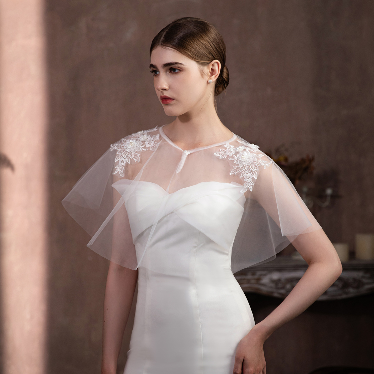 V321 Новое Белое двойное плечо кружева руки покрытие для похудения свадебное платье Тюль шаль Свадебные аксессуары