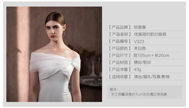 V323 свадебный платок Элегантное свадебное платье с открытыми плечами Тюль шаль для похудения свадебные аксессуары оптом