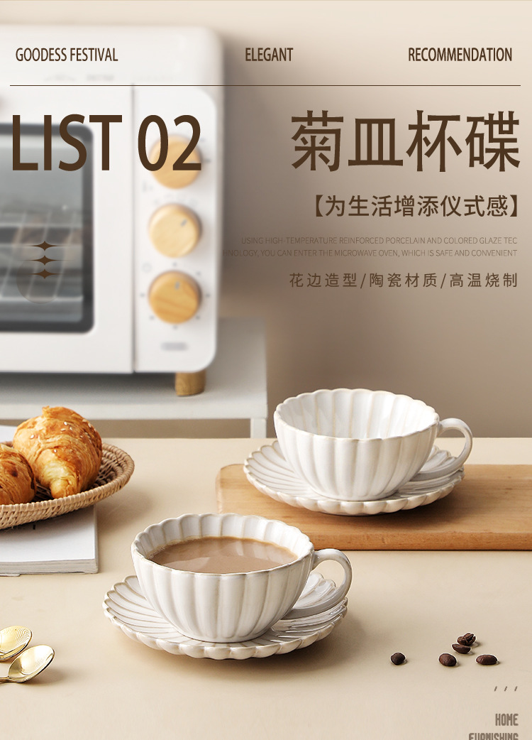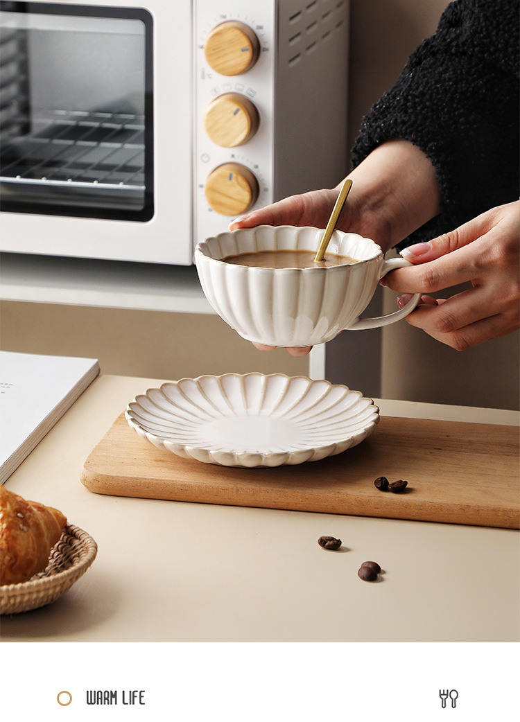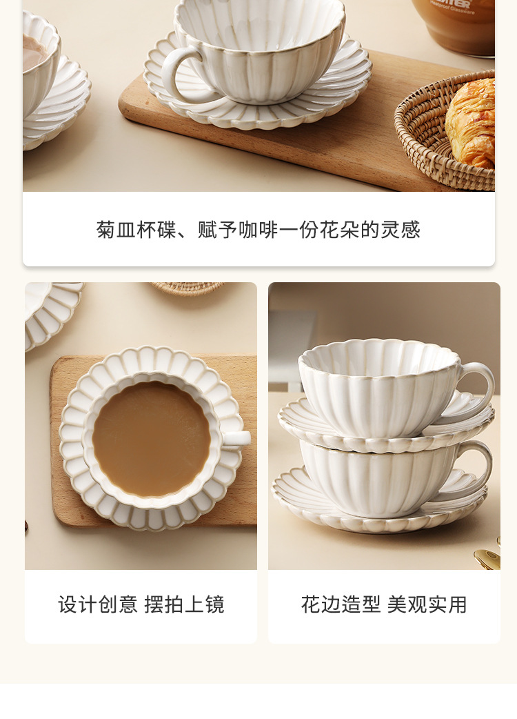 Оптовая Хризантема зерно керамическая чашка блюдце Бытовая большая емкость кружка чашка для завтрака молоко овсяная чашка Питьевая чашка