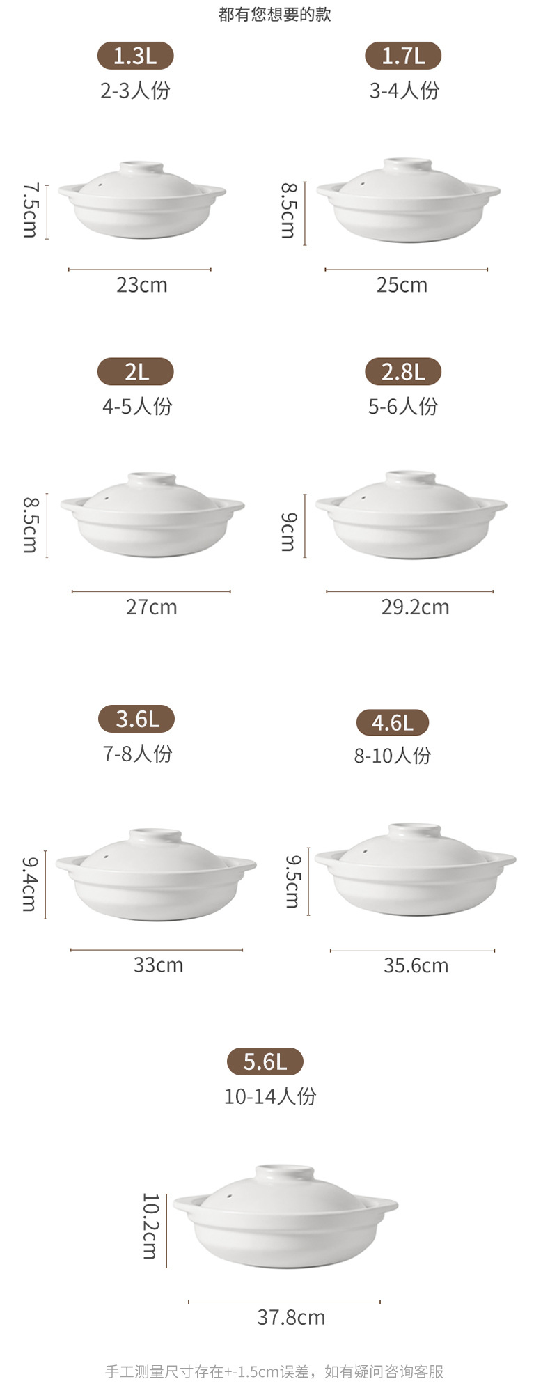 1 литр*продукты питания на 1 человека [горячие и холодные, импортные материалы] сожжены и заменены новыми; 1,3 литра*продукты на 2-3 человека [горячие и холодные, импортные материалы] сожжены и заменены на новые; 1,7 литра*Питание на 3-4 человека [Не бойтесь жары и холода, импортные материалы] Замените, если сгорело или треснуло; 2 литра*продукты на 4-5 человек [горячие и холодные, импортные материалы] сожжены и заменены на новые; 2,8 литра*Питание на 5-6 человек [Не боится жары и холода, импортные материалы] Сожжен и заменен на новые; 3,6 литра*7-8 человек [горячие и холодные, импортные материалы] сожжены и заменены на новые; 4,6 литра*Питание на 8-10 человек [Не бойтесь жары и холода, импортные материалы] Замените, если сгорело или треснуло; 5,6 литров*10-14 человек еды [горячая и холодная, импортные материалы] сожжена и заменена на новые