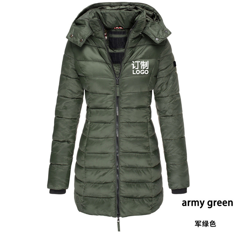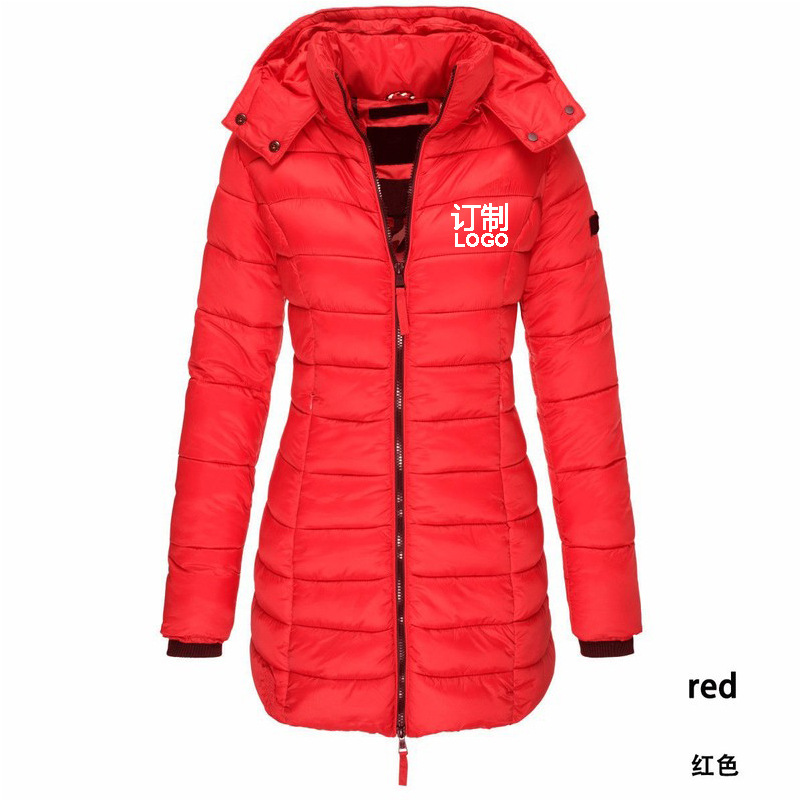 Можно напечатать печать логотипа Европейского кода, трансграничная зимняя женская хлопковая одежда, куртка длинной тонкой теплой однотонной с капюшоном