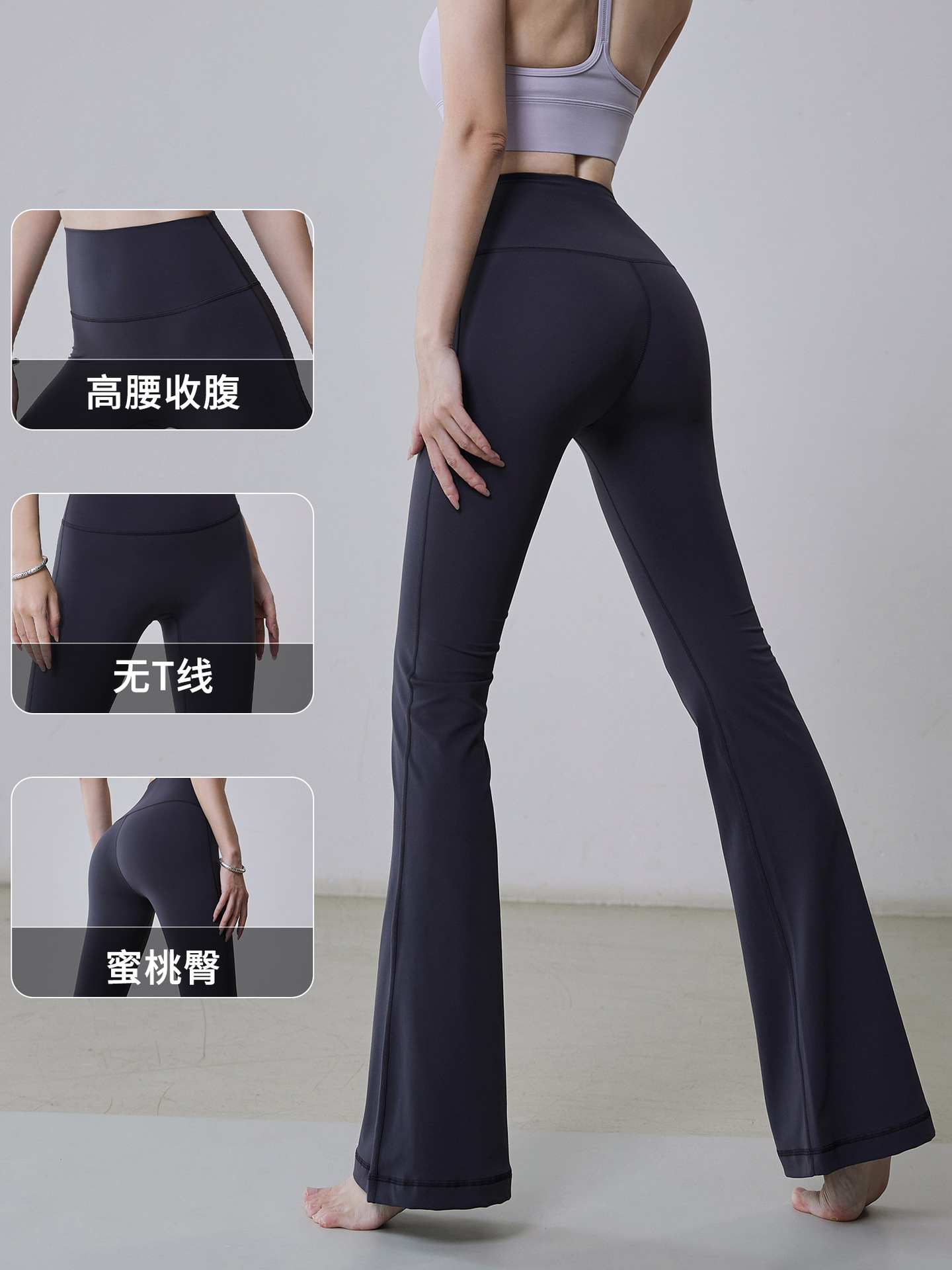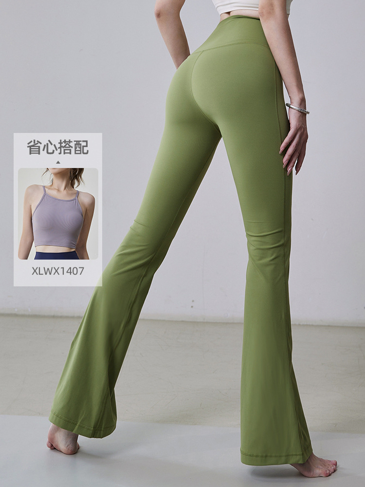 Бесшовные спортивные брюки для йоги с высокой талией, эффектом «второй кожи», контролем живота, утягивающие, с эффектом подтяжки ягодиц, широкие, расклешенные.