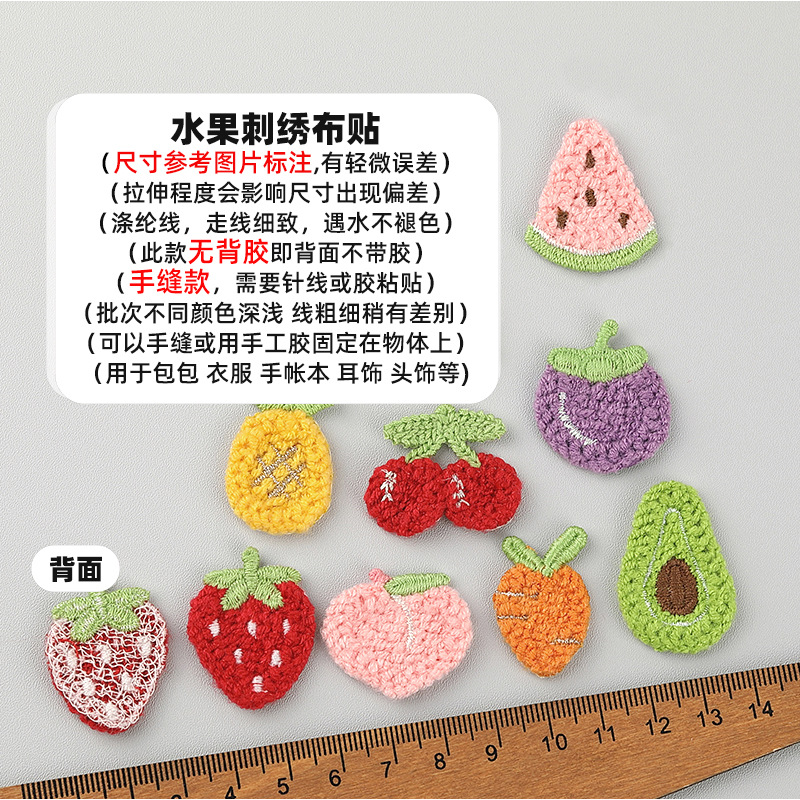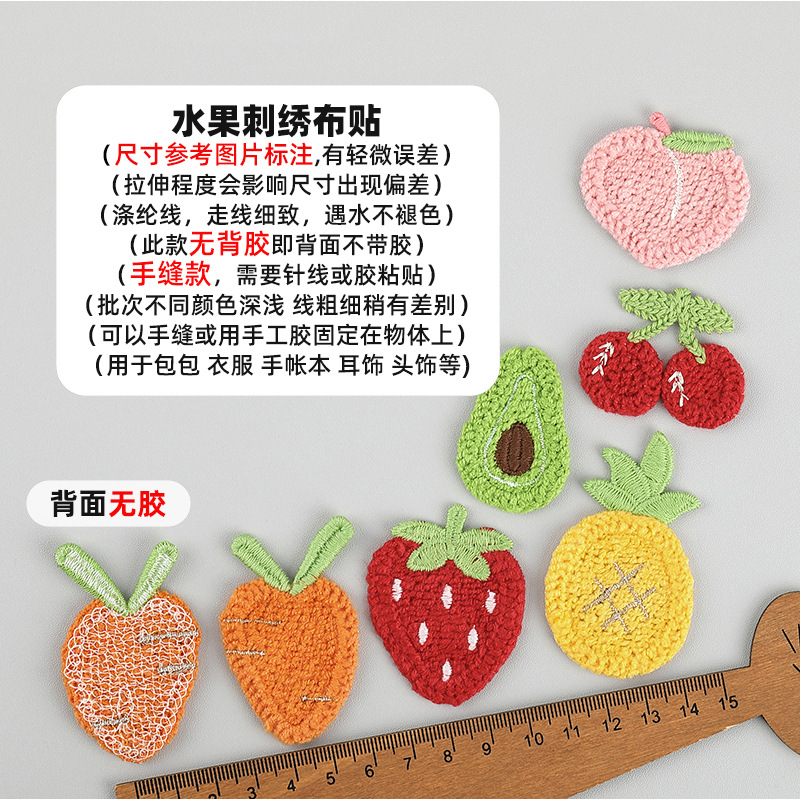 Оптовая продажа, шерстяная вышивка, фруктовый ремонт, нашивка, ткань, аппликация, головной убор, шпилька, сумка, аксессуары, обувь, носки, шапки, аксессуары для одежды 8