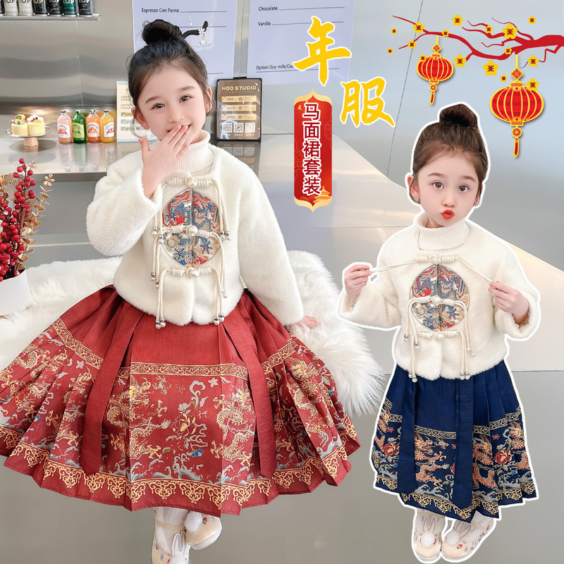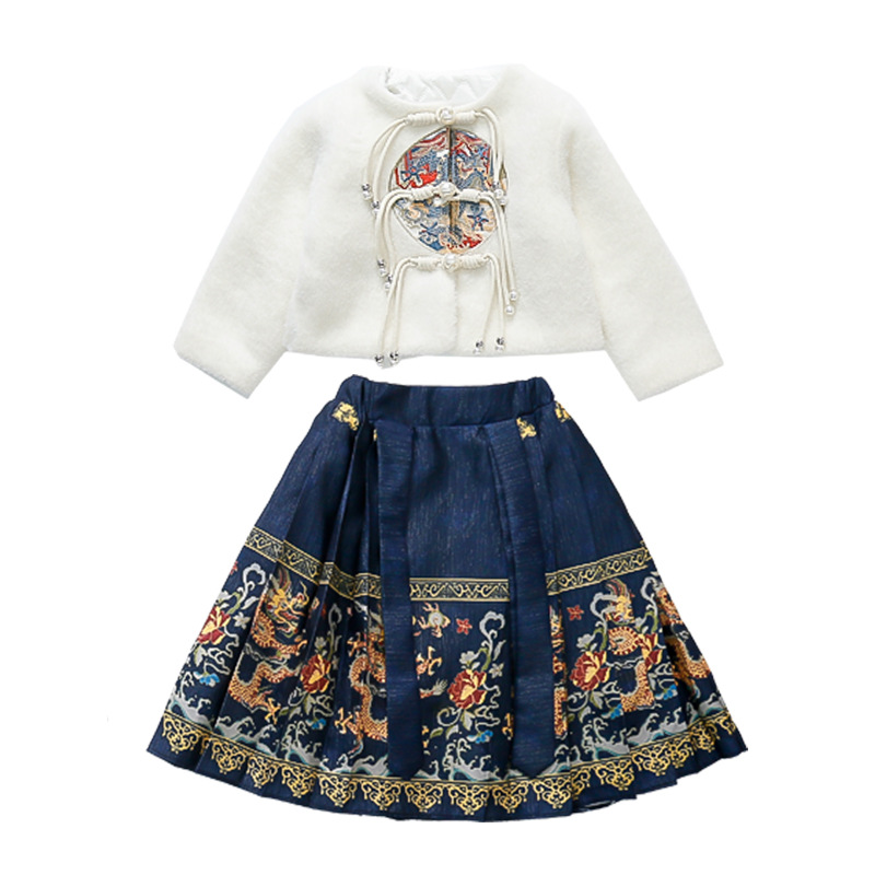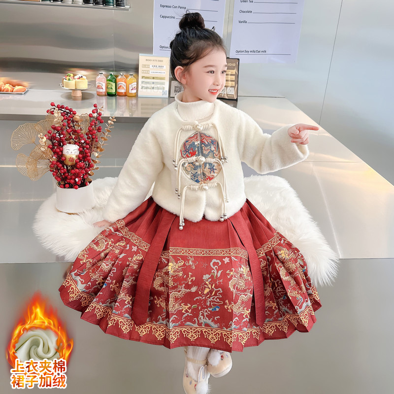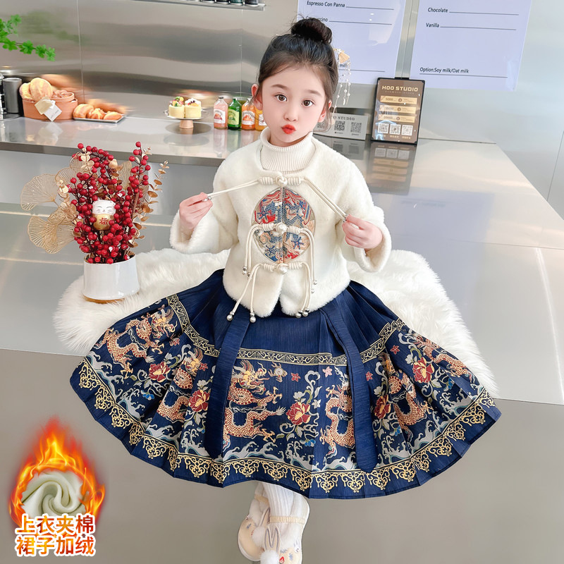 Жилетный костюм для девочек 2023 Зимний Детский костюм ханьфу в национальном стиле Тан с длинными рукавами, одежда для новогодних поздравлений, древний костюм для маленькой девочки