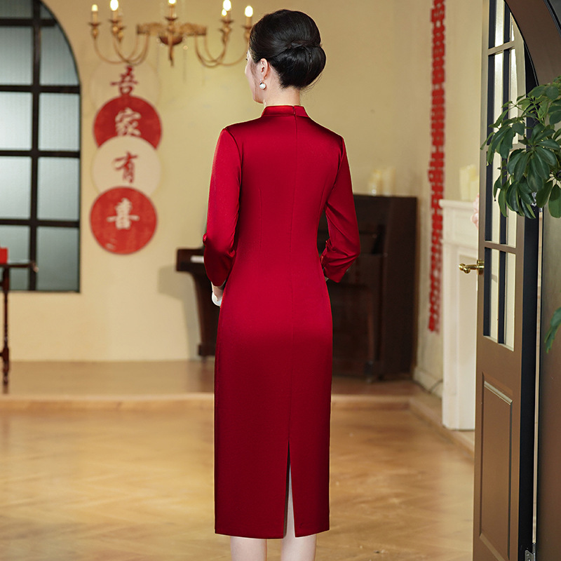 Новый высококачественный темперамент свадебный банкет свекрови среднего возраста мама чонсам свадебное платье осеннее свадебное платье