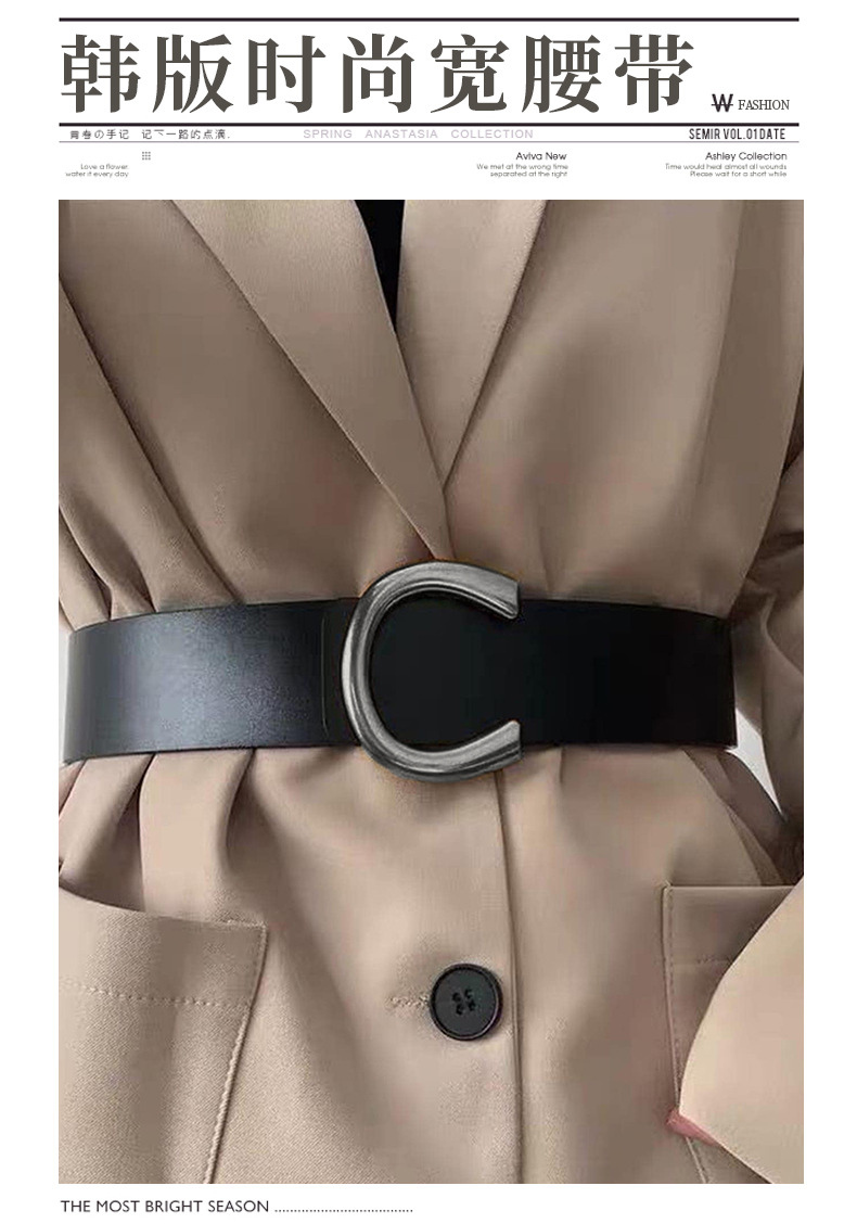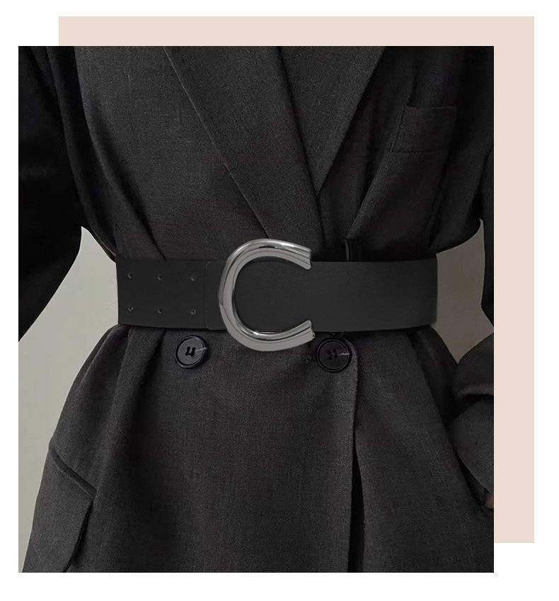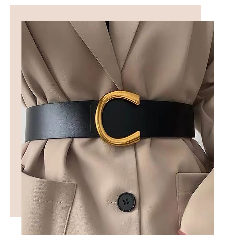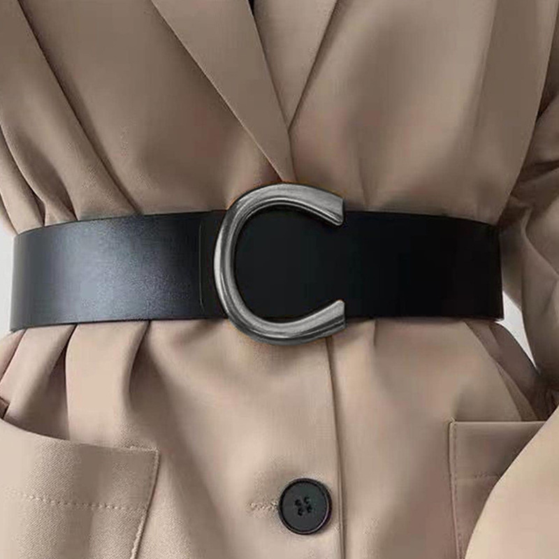 2023 Новый дизайн Sense корейская мода C Пряжка пояс нишевый пояс черный декоративный костюм платье Талия печать