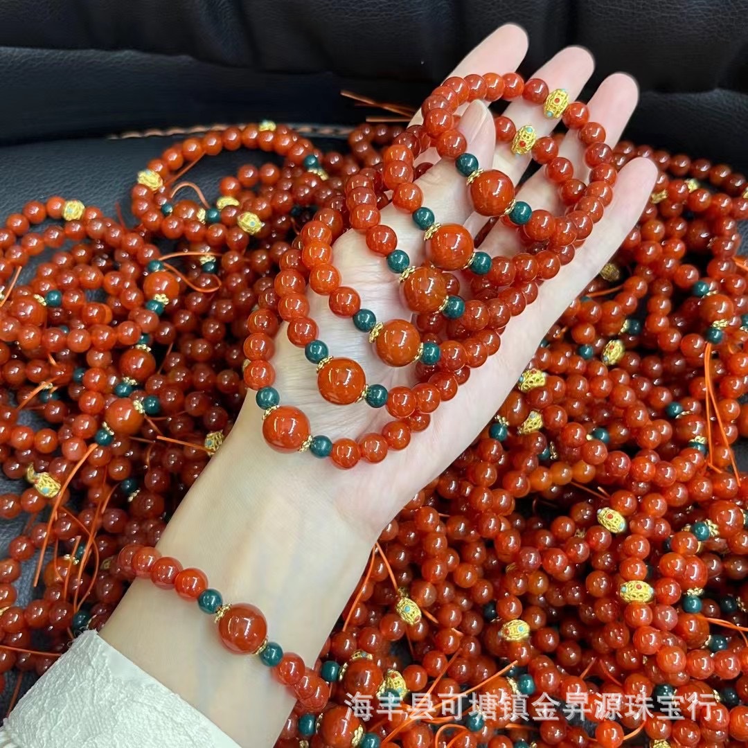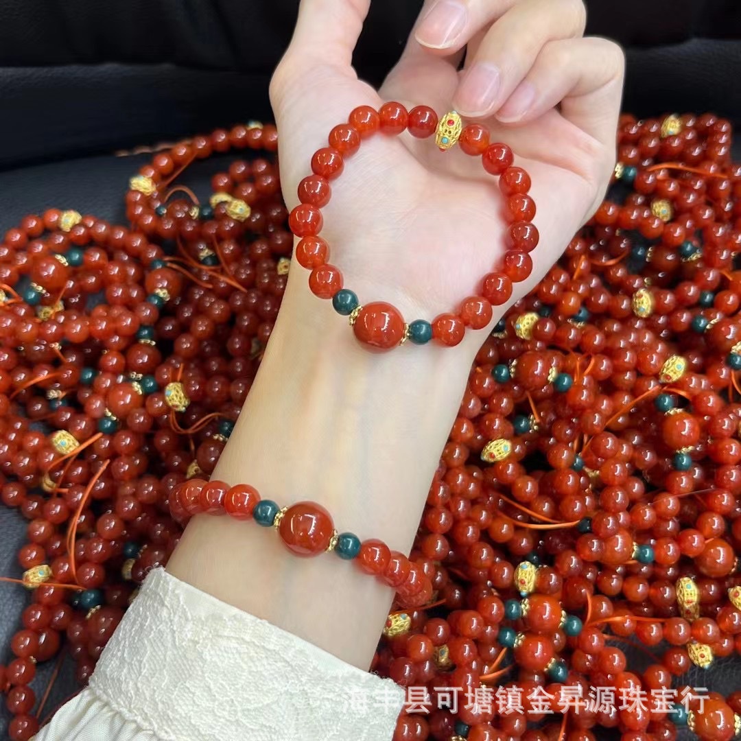 天然红色玛瑙手链南红手串搭配古法金南红单珠夏天时尚直播批发款 批发量越大价格越低,可供直播间长期合作,欢迎来电私聊