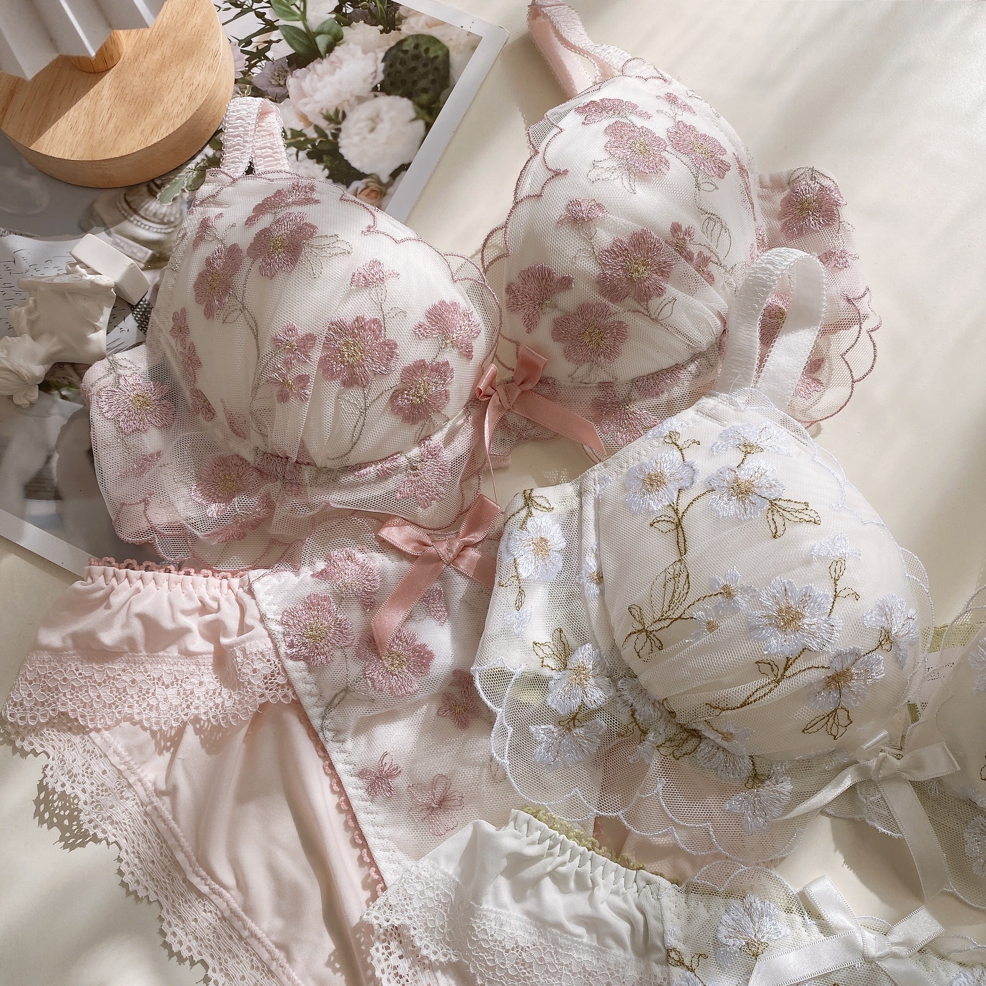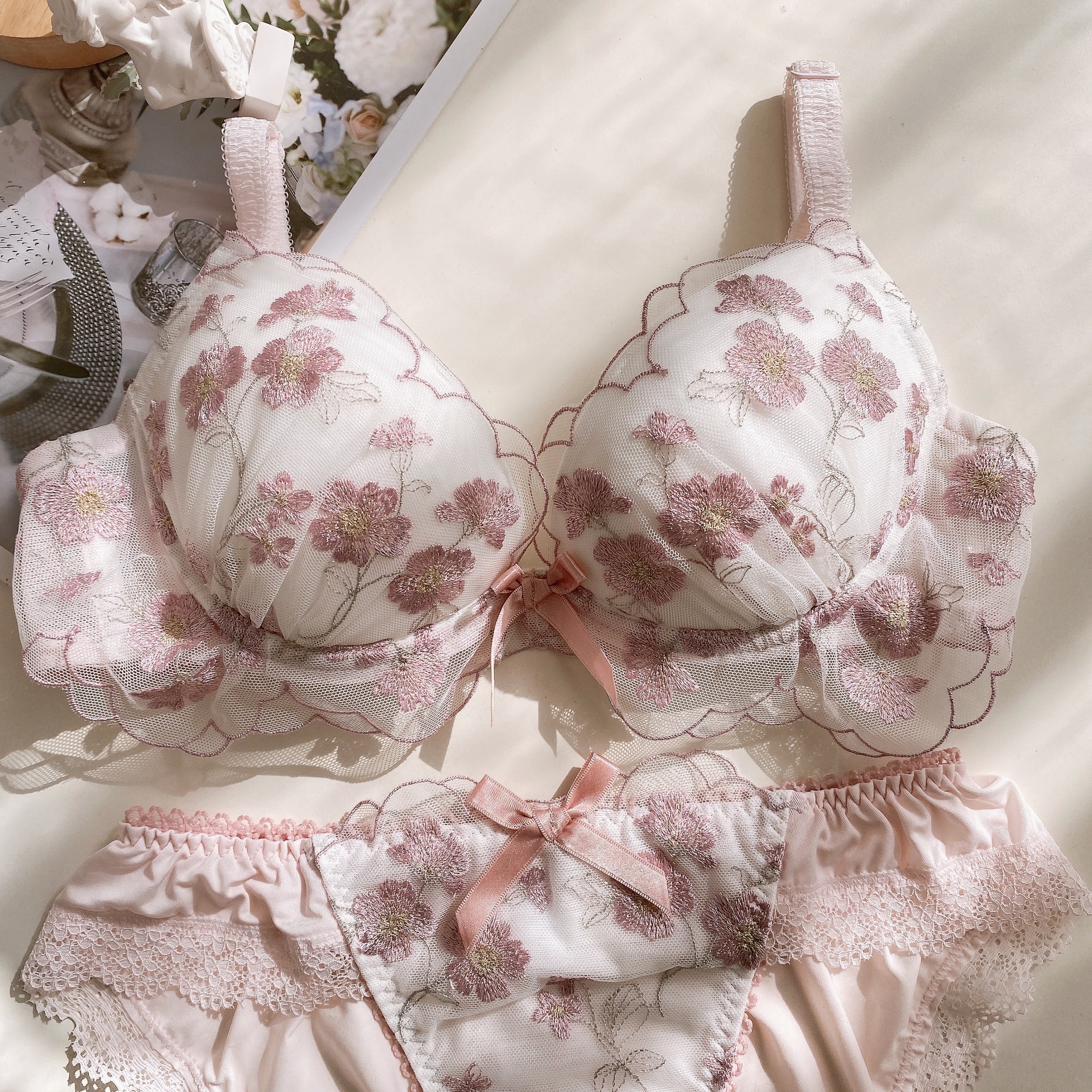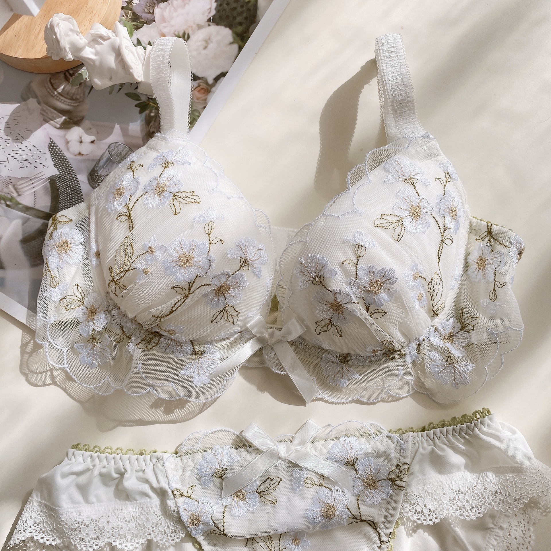 Костюм Феи в японском стиле с тонким кружевным бюстгальтером и вышивкой, женское нижнее белье с низким сердцем, бюстгальтер