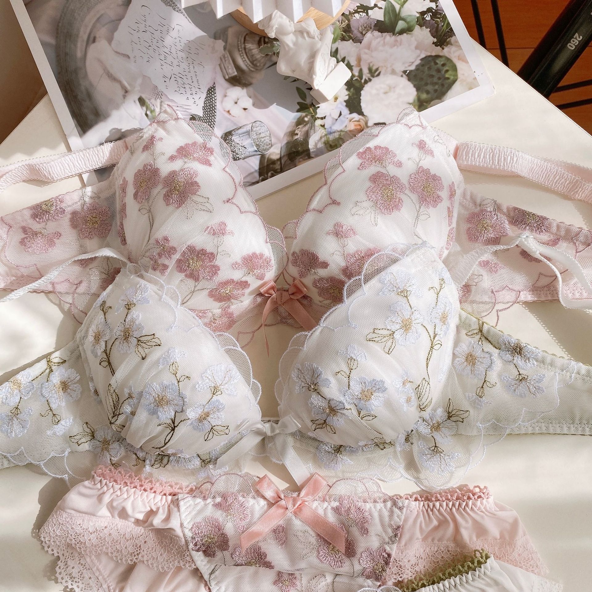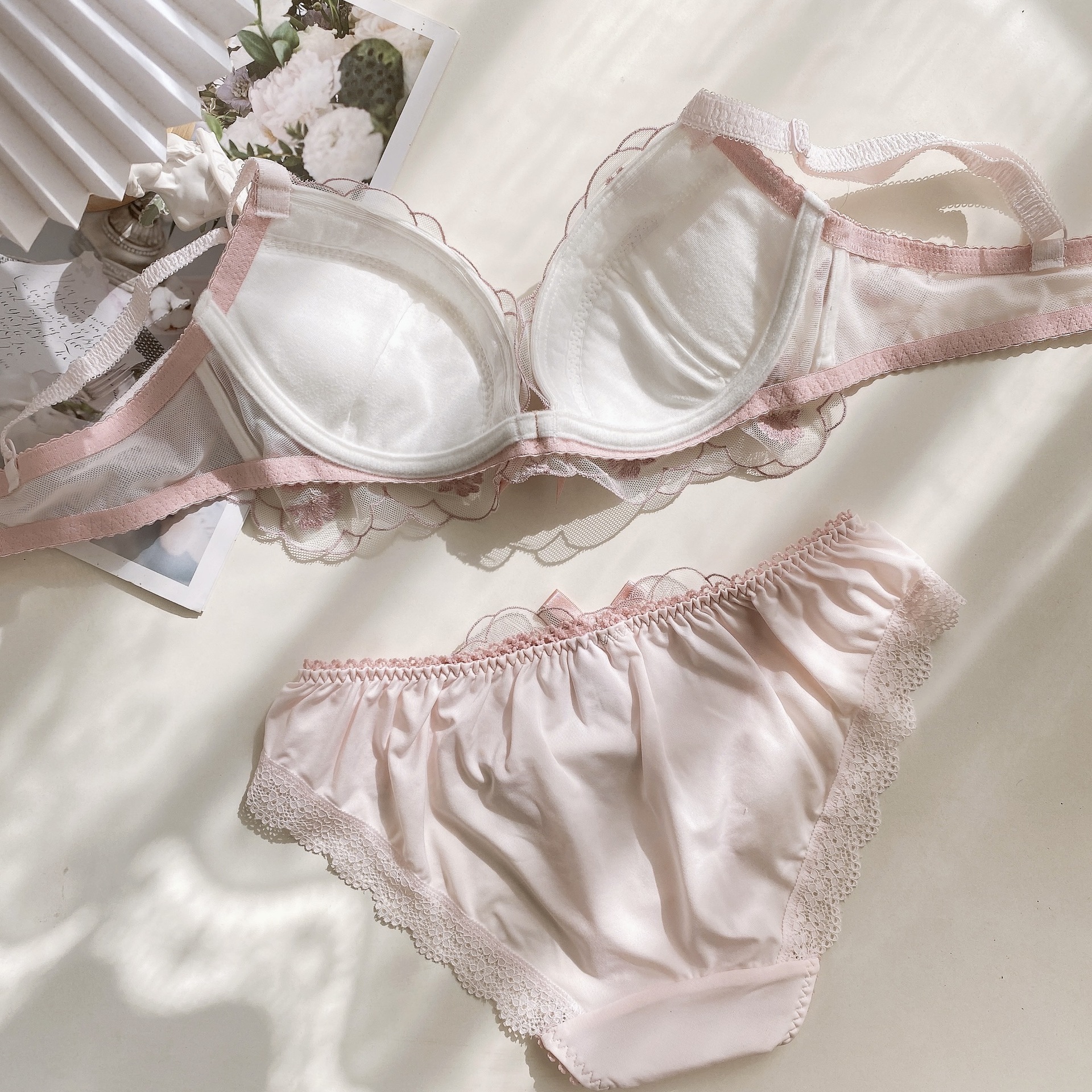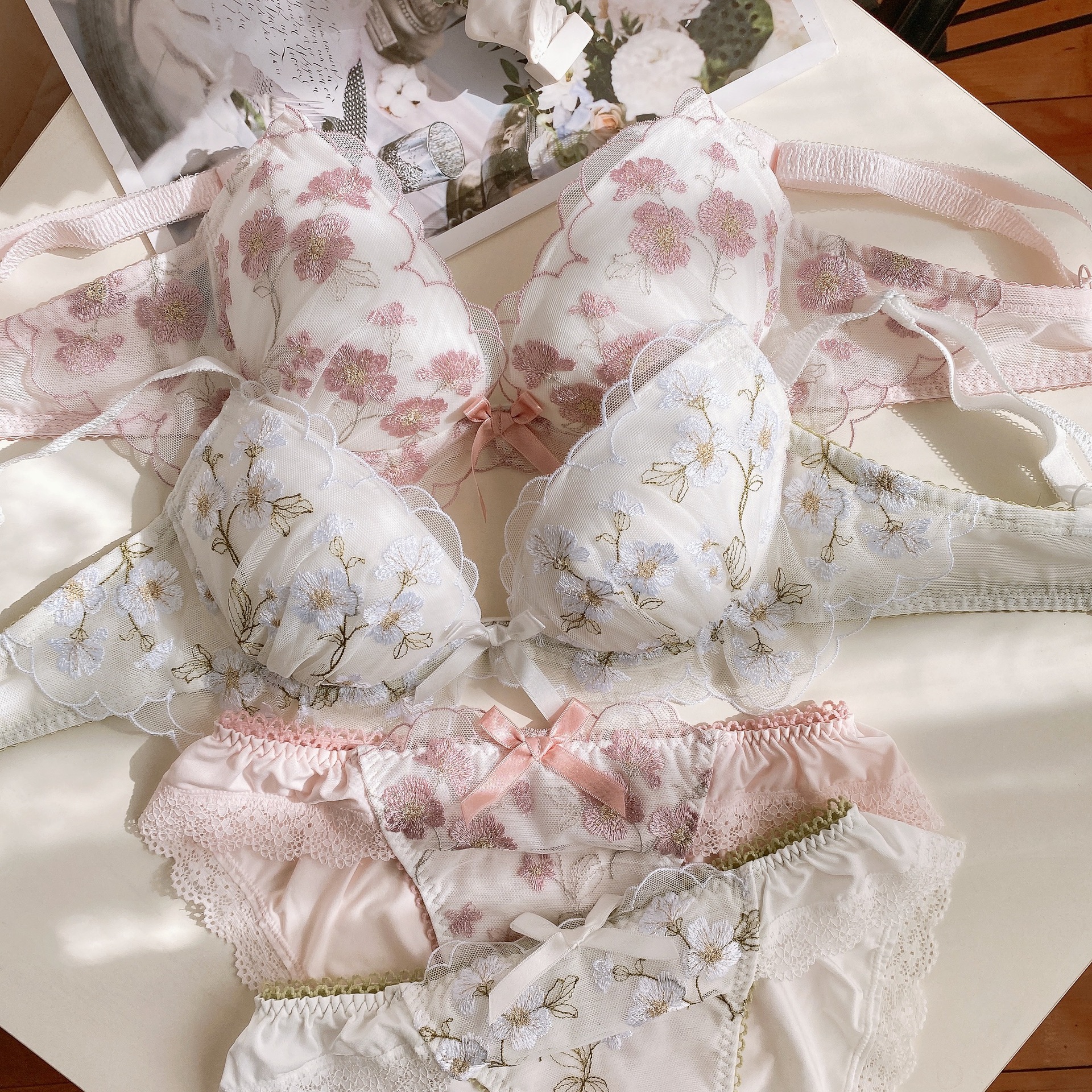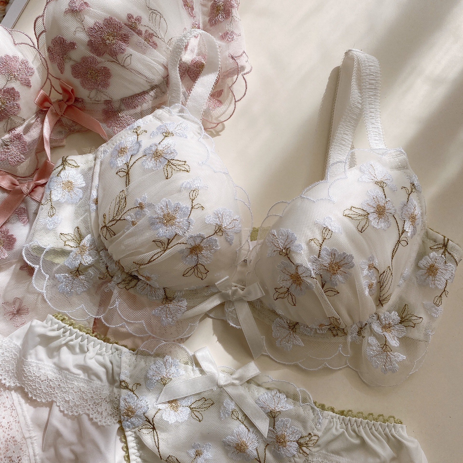 Костюм Феи в японском стиле с тонким кружевным бюстгальтером и вышивкой, женское нижнее белье с низким сердцем, бюстгальтер